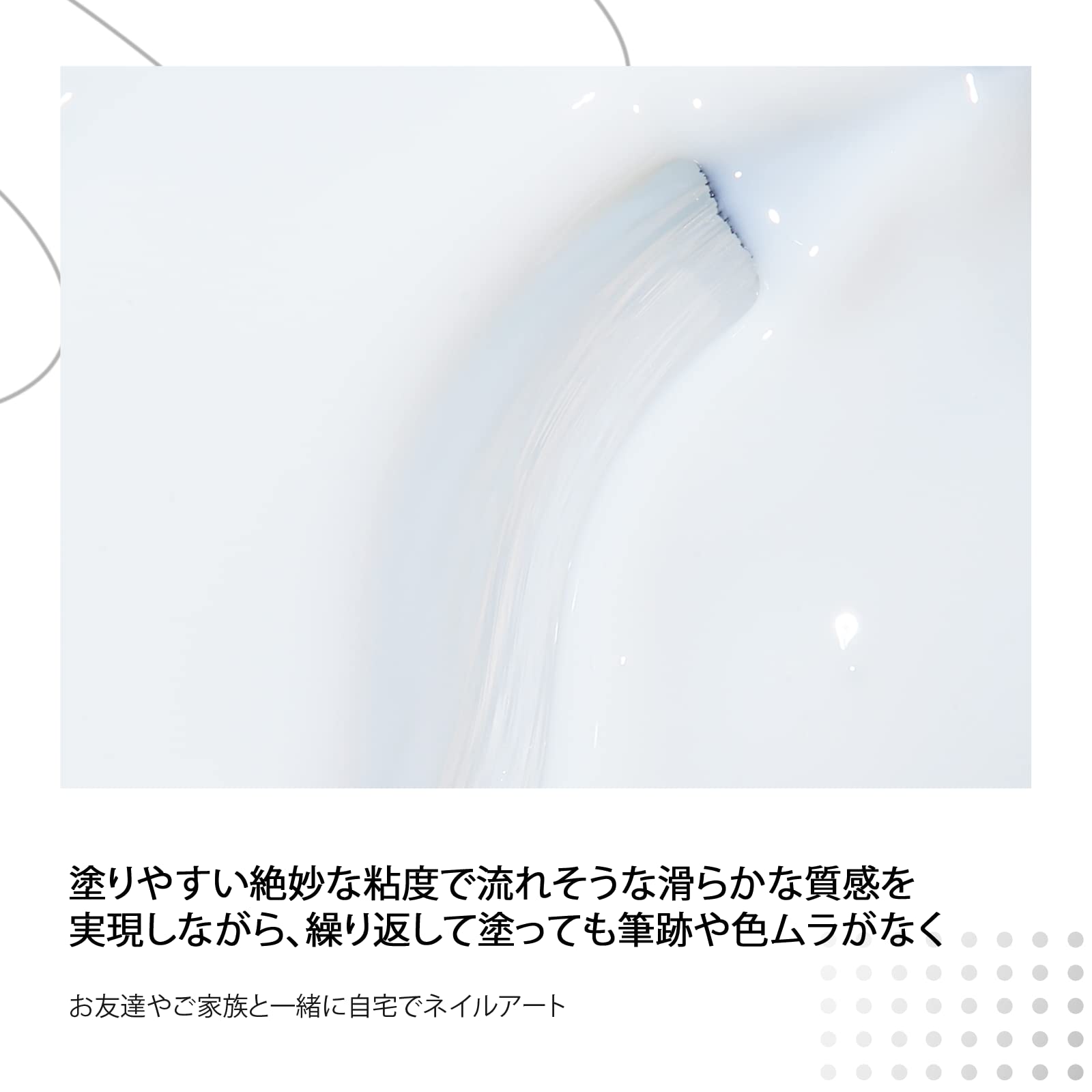 【発色抜群】なめらかな柔らかいテクスチャーで、発色抜群です。絶妙な粘度で流れにくい、割れやすいネイルでも安心です。