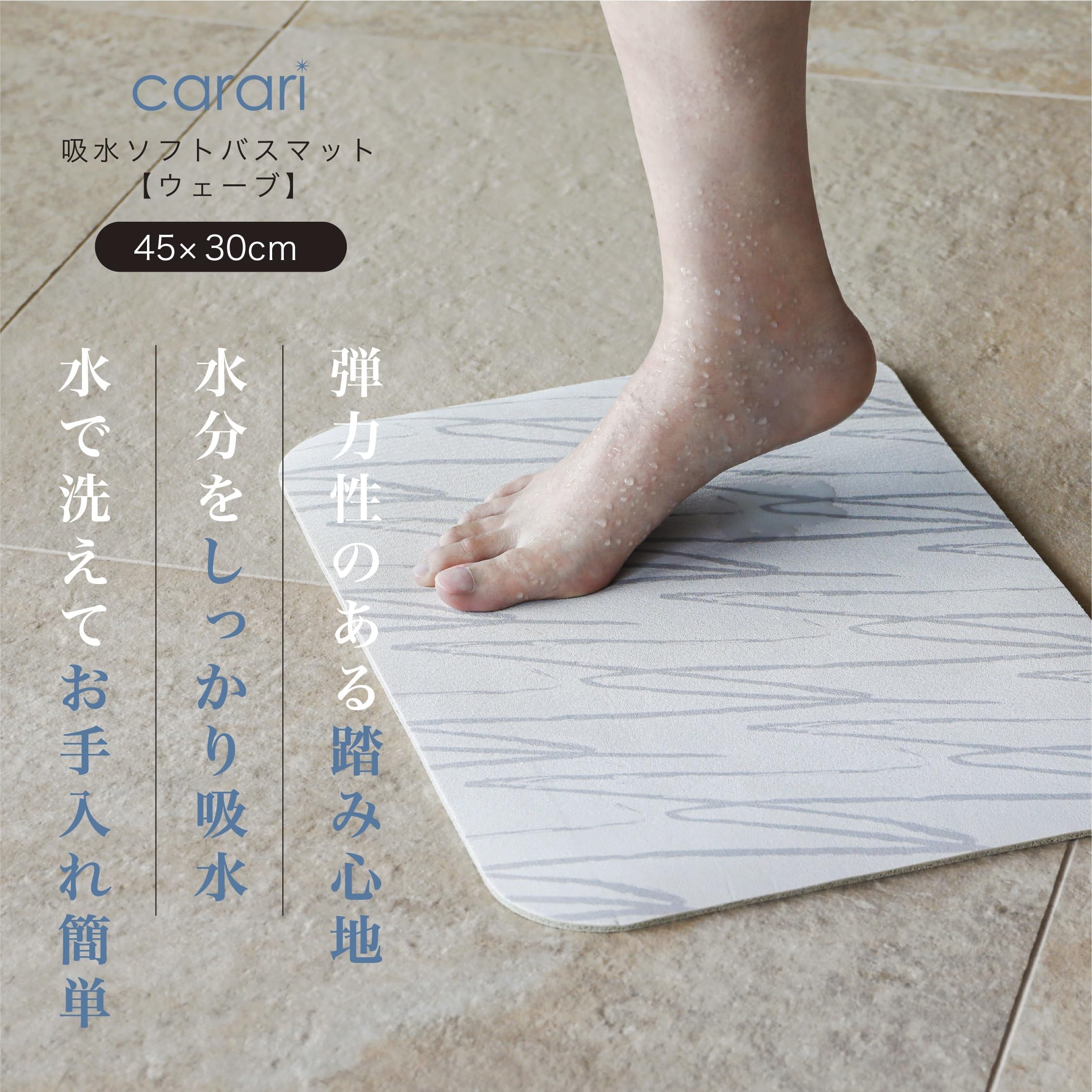 シービージャパン バスマット ソフトタイプ 45×30cm ウェーブ柄 裏面エンボス加工 丸めて収納できる 吸水ソフトバスマット carari