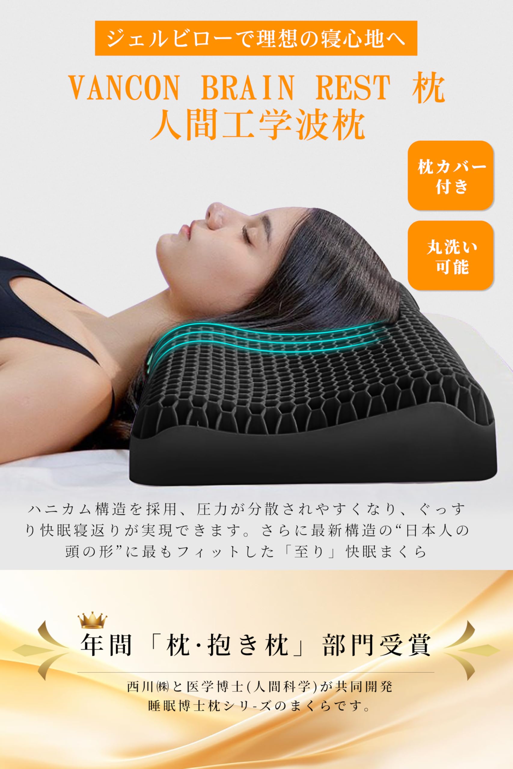 【首が痛くならない枕】Vancon無重力枕は人間工学に基づいたハニカム構造により、ウェーブ形状のネックフィットで、更に首の凸凹に合わせた作りになっており、頭部から首筋を優しく持ち上げるスタンダードなフォルム、健康的な睡眠をサポートする枕、第二世代高品質新素材(TPE)で使用、高い衝撃吸収性があり、劣化など滅多に少なくて、長く使っても形崩れないです。
