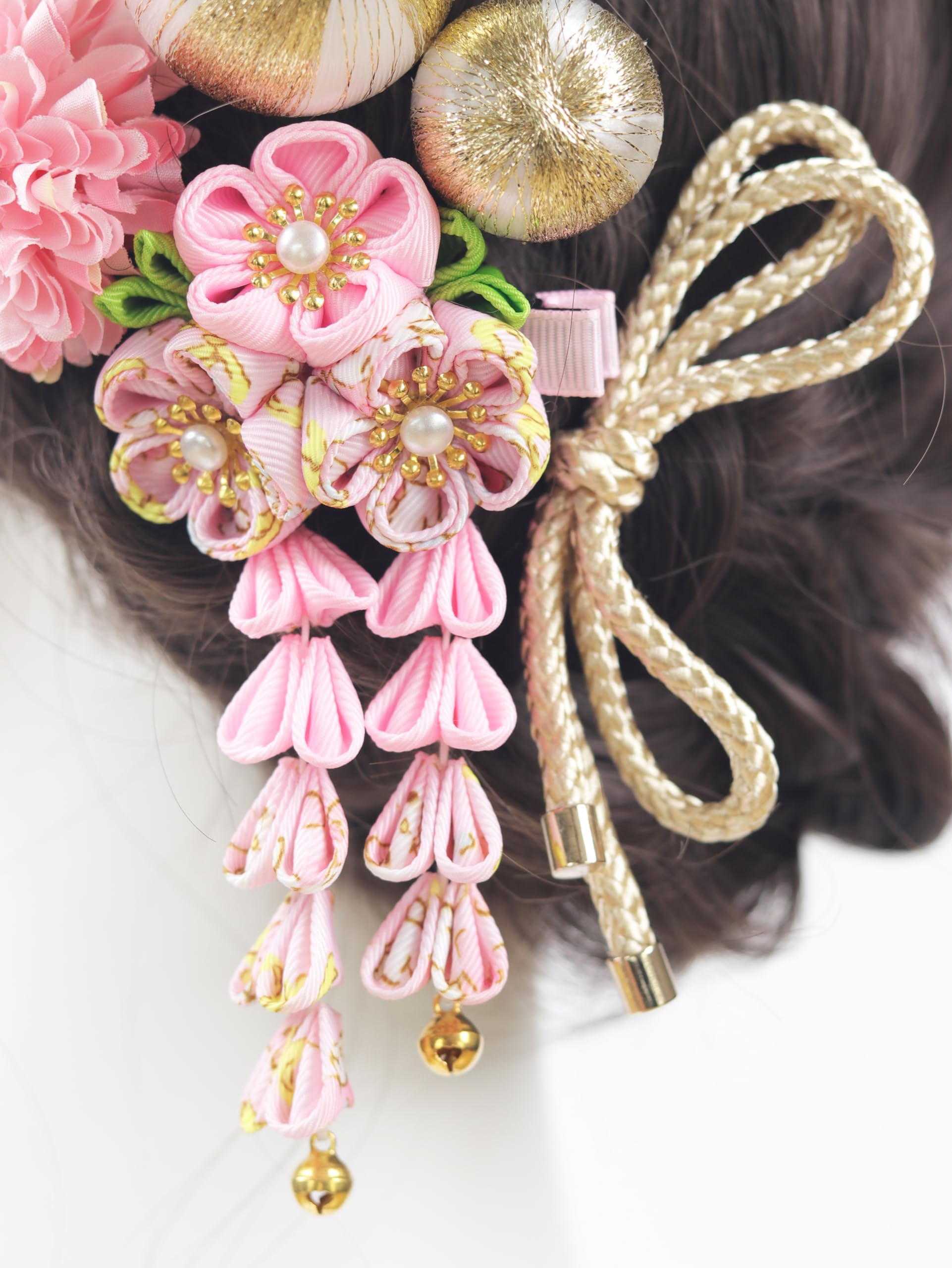 [NANA手作り]髪飾り つまみ細工 和玉 紐リボン 成人式 七五三 お祭り ヘアーアレンジ 袴 卒業式 花 入園式 三歳 七歳 3歳