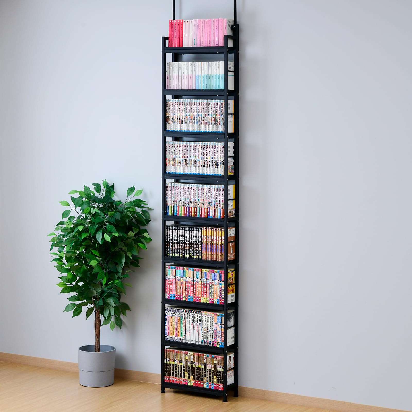 山善(YAMAZEN) 本棚 (突っ張り) 大容量 スリム 全体耐荷重180㎏ 幅41×奥行15.5×高さ210.5-270㎝ 壁面収納 ラック 組立品 ブラック RTRS-4015(BK/BK4) | kor Cat*