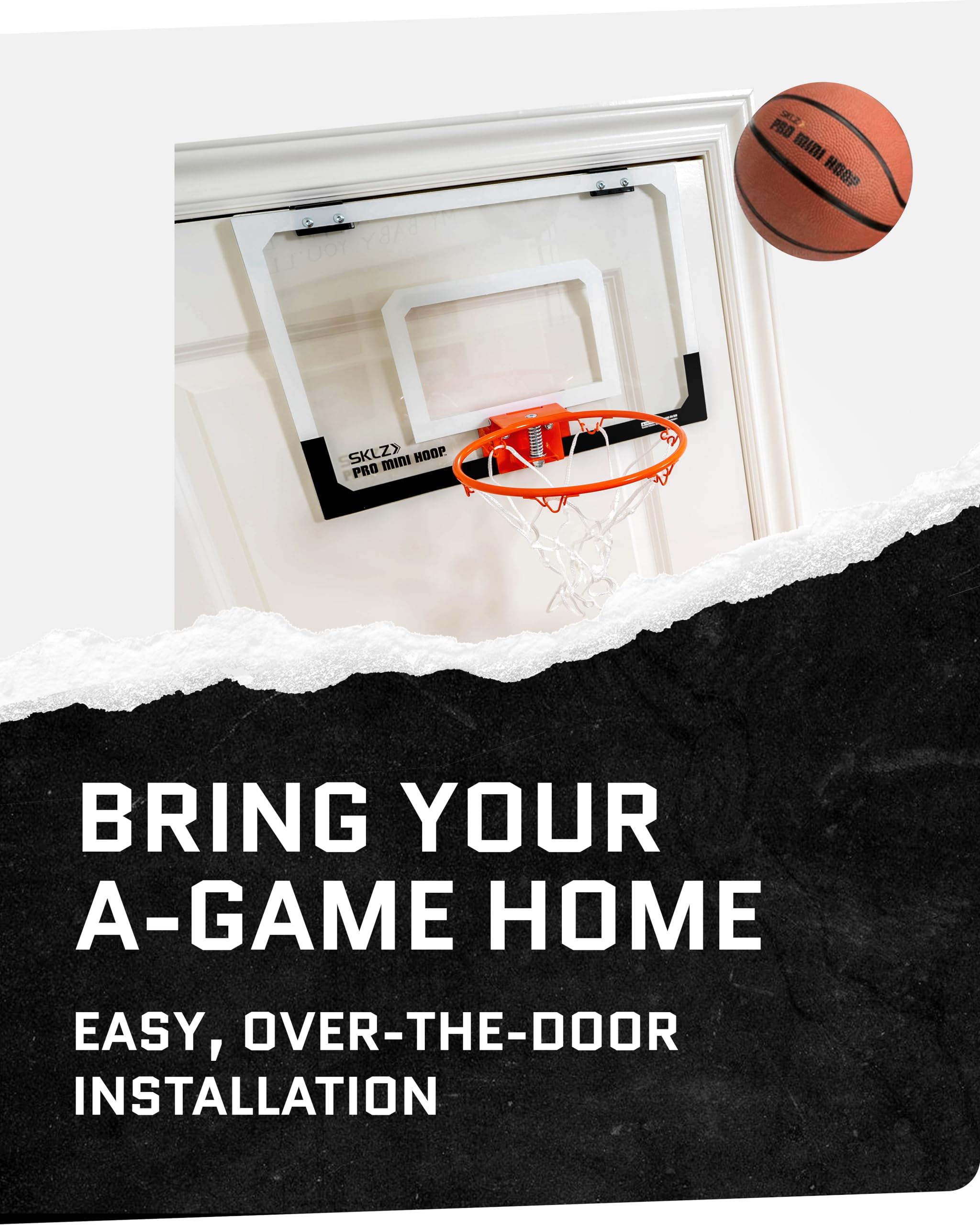 SKLZプロミニバスケットボールフープでシュートスキルを練習しましょう。寮の部屋やオフィスに最適の追加アイテムで、バスケットボールの楽しさとスキル向上を実現します。 この屋内用ミニバスケットボールフープは、本格的なバスケットボールアクションをあなたのスペースにもたらします。フルサイズのリムの外観と感触を模倣したプログレードのスチールリムが、自信を高め、実際の試合に備えるサポートをします。 バンクショットを練習し、安心してシュートテクニックを磨くことができます。 18x12インチのクリアポリカーボネート製バックボードは、最も過酷な練習セッションに耐えるように作られており、激しいプレー中でも壊れません。9インチのスプリングアクションブレイクアウェイリムは、リバウンドするたびに跳ね返り、ダンクスキルを鍛え、垂直跳躍を上げるのに最適です。 30層のバスケットボールネットは、頻繁な修理や交換を必要とせずに、毎日の練習セッションや試合に耐えるように設計されているため、ネットの摩耗や損傷の心配もありません。 プロミニバスケットボールフープのセットアップは簡単です。ドアフレームに掛けて、必要に応じて動かすだけ。スライド式ドアマウントには保護フォームパッドが付いており、損傷や跡を防ぎます。 バスケットボールを購入する必要はありません。 SKLZプロミニバスケットボールフープには、屋内で安全な5インチのゴム製バスケットボールが付属しているので、すぐにプレーや練習を始めることができます。 この一流のミニバスケットボールフープでバスケットボールへの愛を新たな高みに引き上げ、いつでもどこでもゲームの興奮を体験してください。