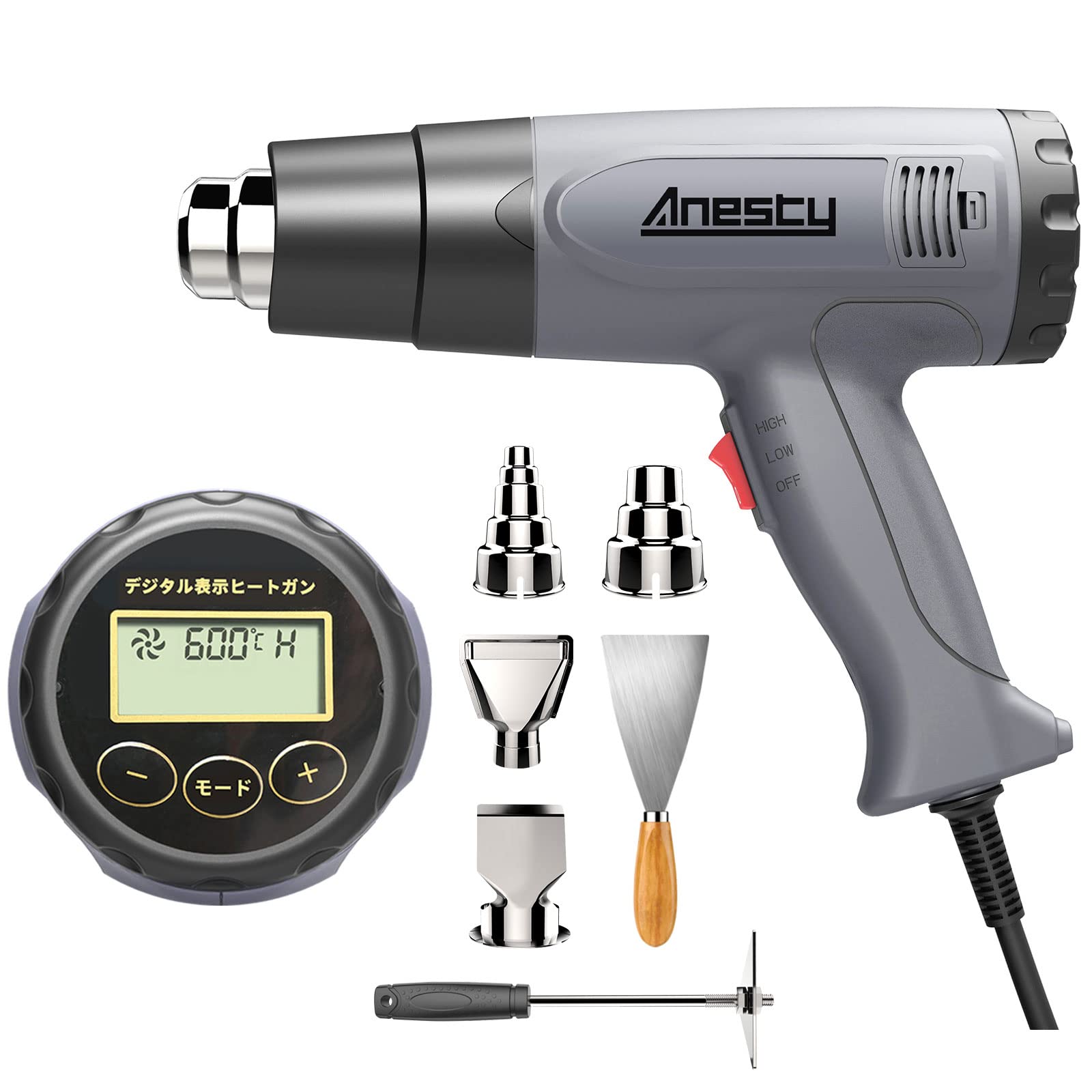 Anesty ヒートガン 液晶に温度調整 熱工具ヒートガン ヒートエアガン 冷却機能 ひーとがん 50-600℃ 2段階風速