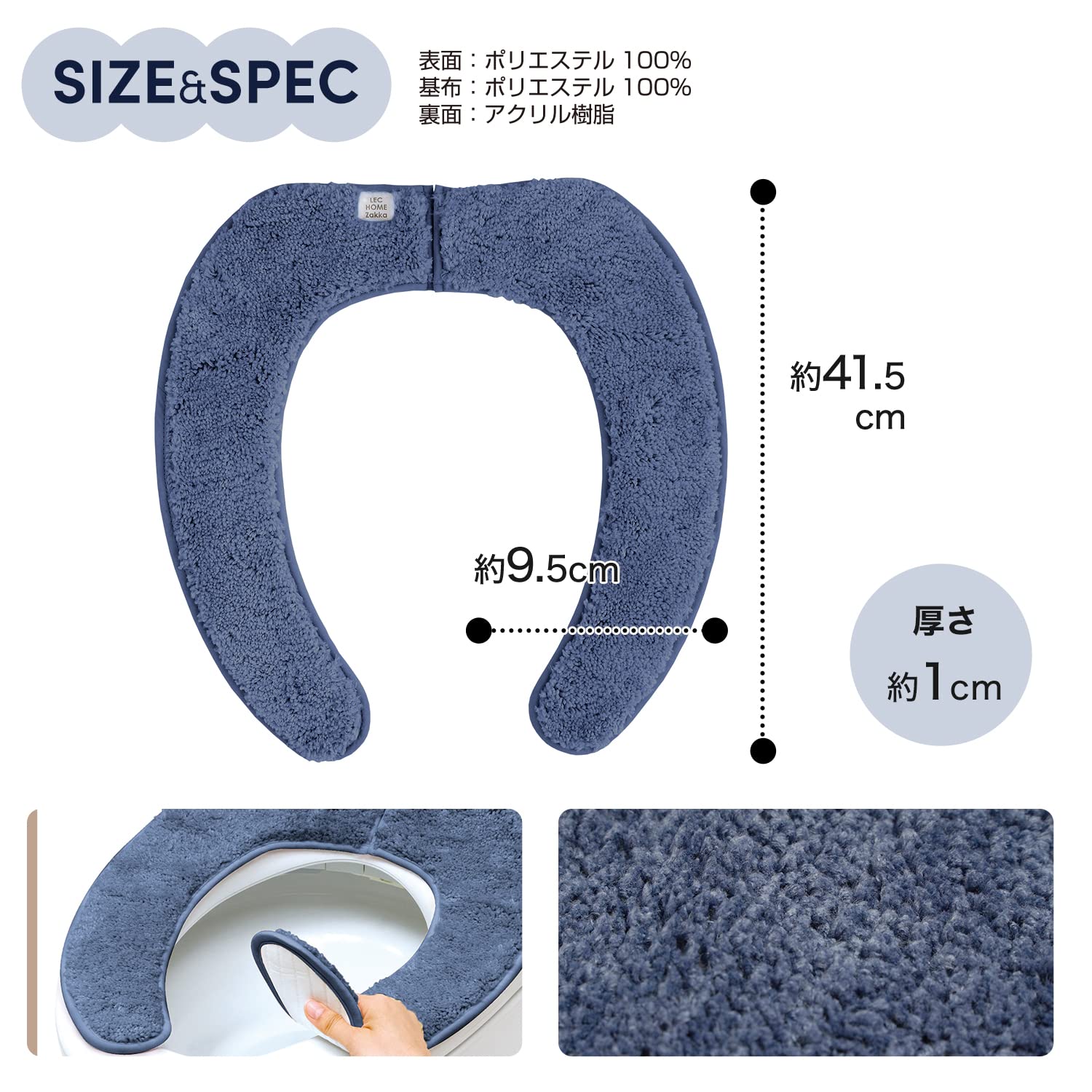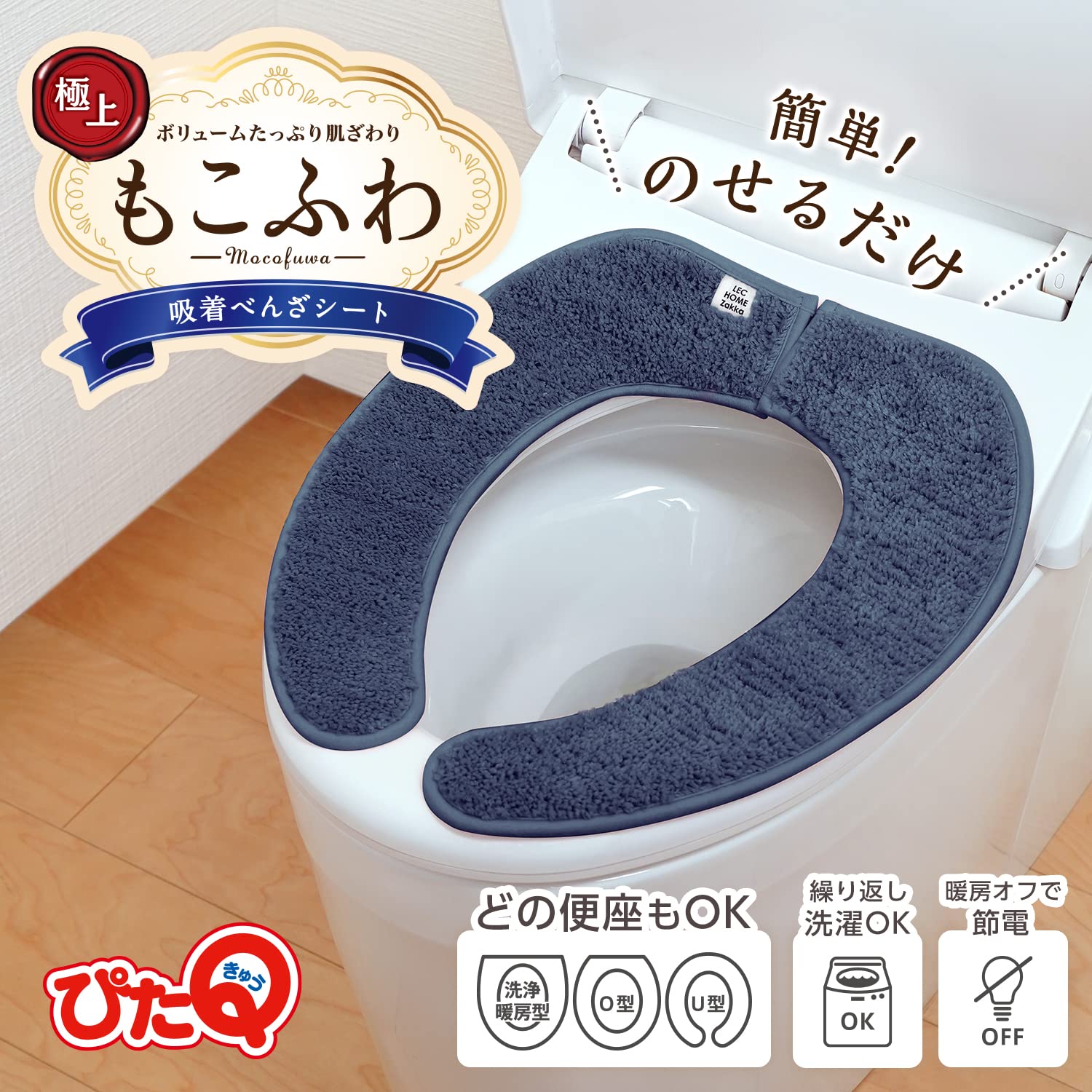 レック(LEC) ぴたQ 吸着 べんざシート 極上もこふわ タフト生地 (ネイビー) 全型対応/貼るタイプ/洗濯OK/薄型パッケージタイプ