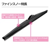 ファインスノーワイパーは、高品質天然ゴムを採用しゴム表面には摩擦抵抗を軽減する「グラファイト粒子(黒鉛)」をコーティングしています。不快な音、ビビりのないスムーズな払拭で雪、雨、泥ハネをスパっと拭き取ります。