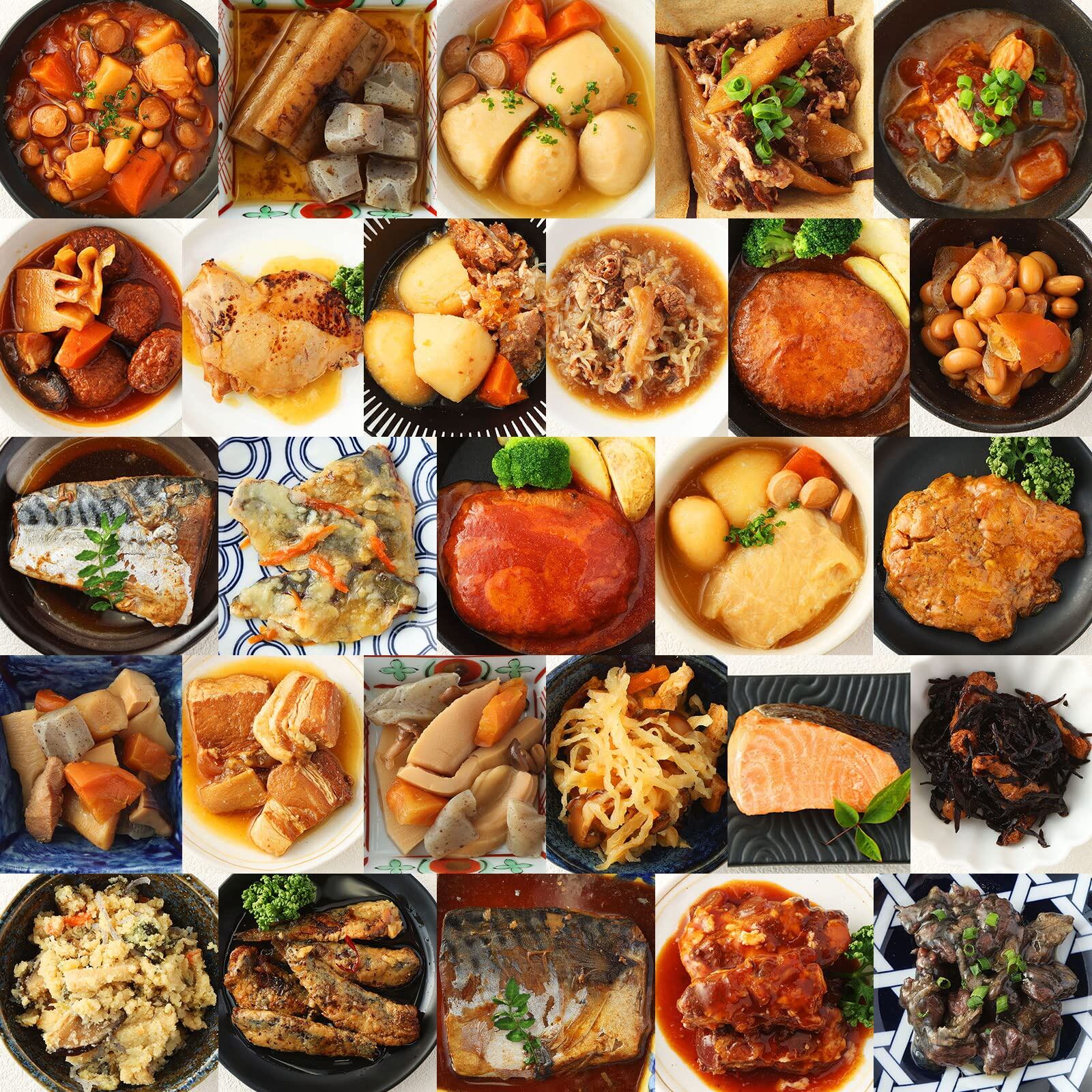 uchipacお惣菜、2021年の新作商品も含めた全27品目を1箱に詰め込んだボリューム感、お得感満点の常温おかずセットです。