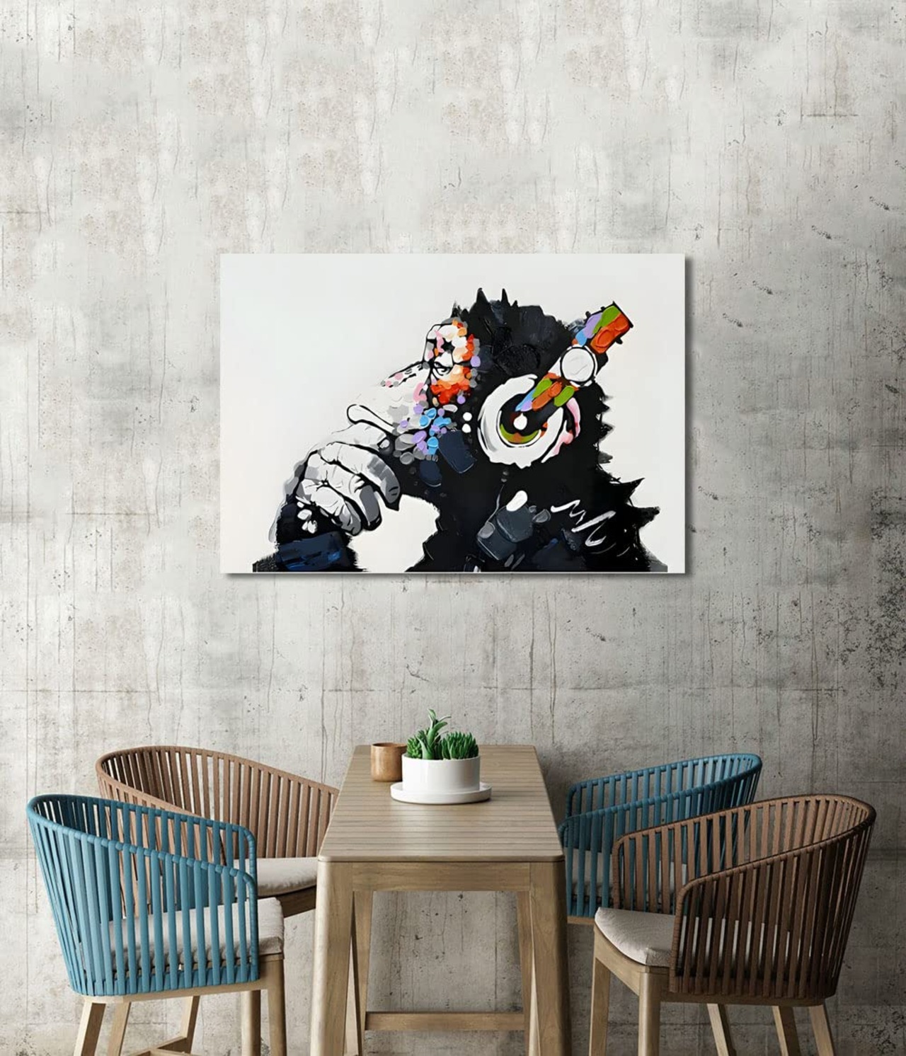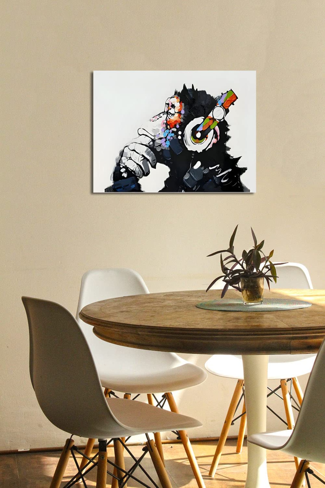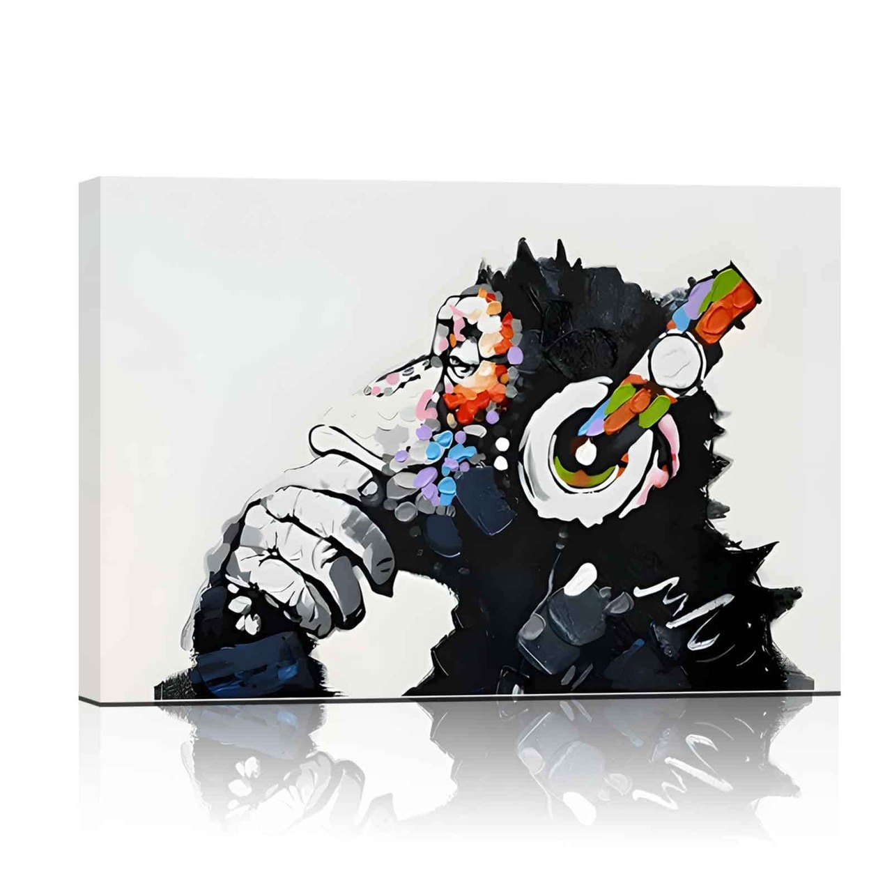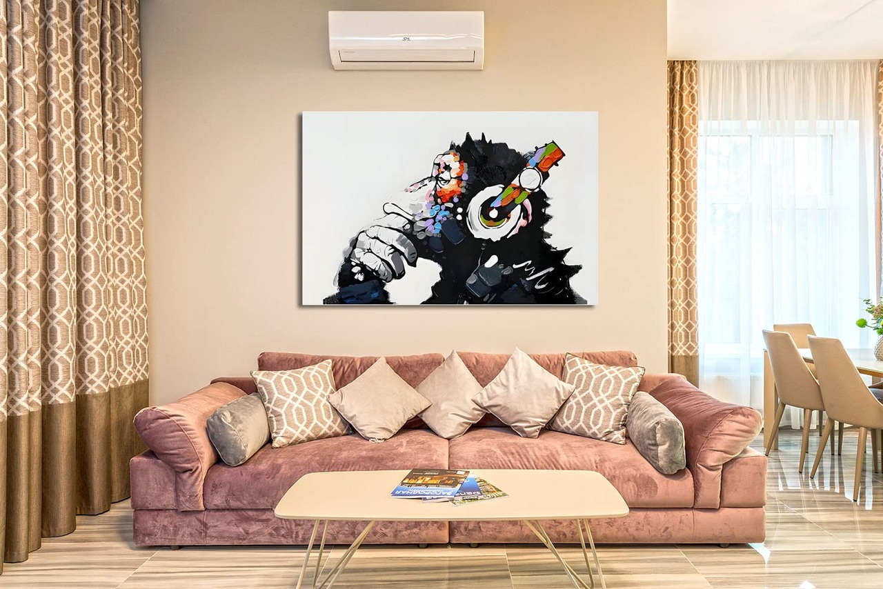 『音楽を聴いている猿』 バンクシー Banksy ポスター チンパンジー キャンバス アートパネル 抽象 絵画 漫画 現代 壁絵 落書き かわいい 動物 モダン ファッション動物油絵ゴリラ 壁飾り インテリア 玄関アートパネル 贈り物 木枠付きの完成品