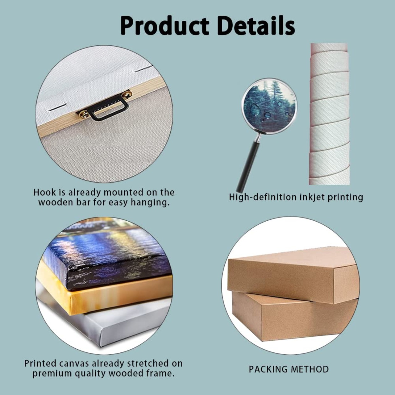 材質:キャンバス(木枠付きの完成品、すぐ飾れることができます)。