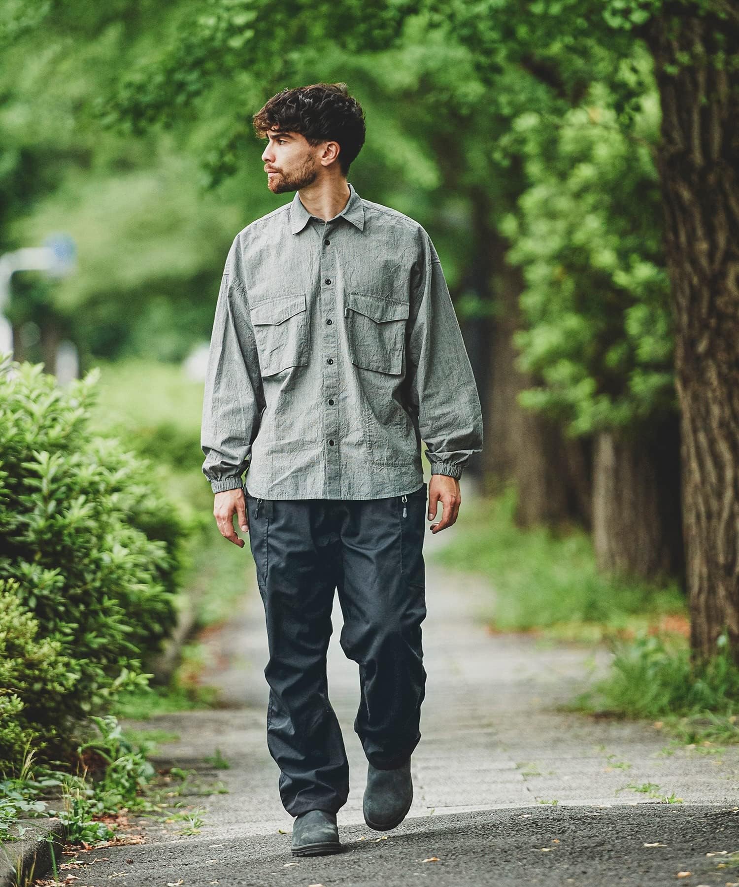 裾に向かって少しテーパードをかけたワークパンツらしい、ゴードンミラーだけのシルエットのギアパンツに仕上がりました。これによりキャンプやガレージなどでインナーを穿いても窮屈な感じになりません。
