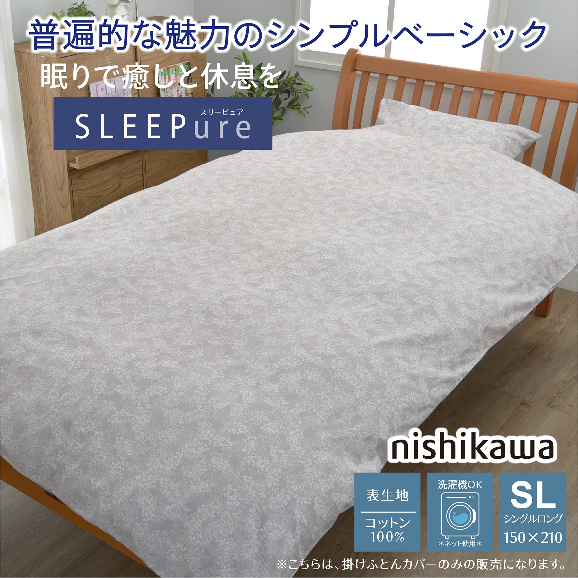 nishikawa【西川】 掛け布団カバー シングル 洗える お肌に優しい肌触りの綿100% 10か所ひも付き 小花柄 スリーピュア 寝具 グレー SI03300001