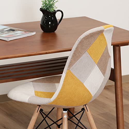 不二貿易 イームズチェア 幅51×奥行46×高さ82㎝ イエロー ダイニングチェア シェル型 パッチワーク 70588