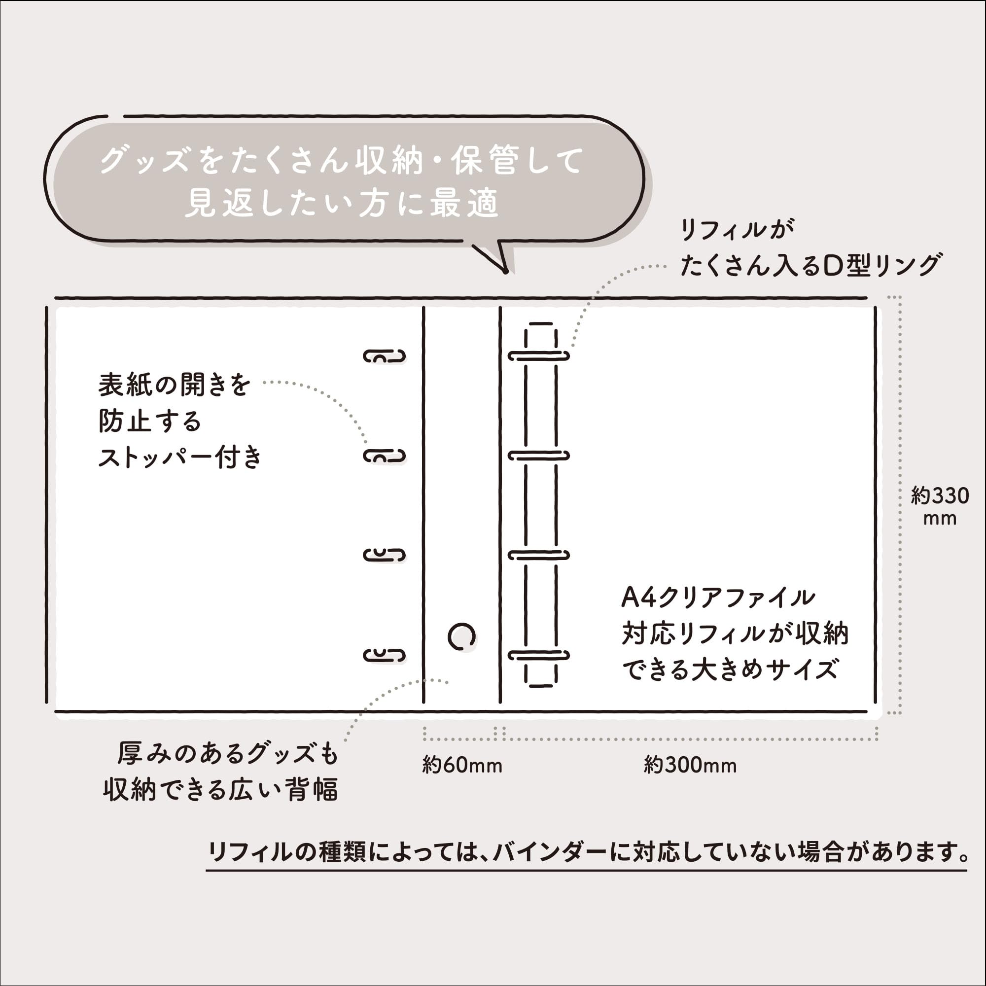・表紙:ポリプロピレン(厚み1.6㎜) ・綴具:金属製4穴Dリング ・製品サイズ:W300×D60×H330mm ・重量:453g