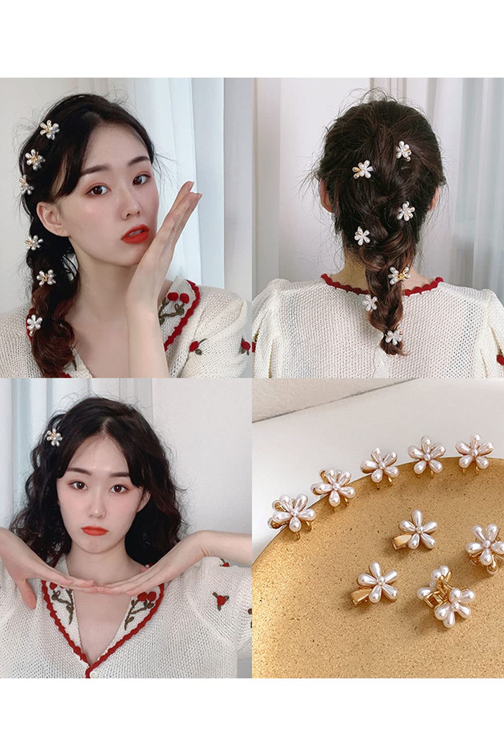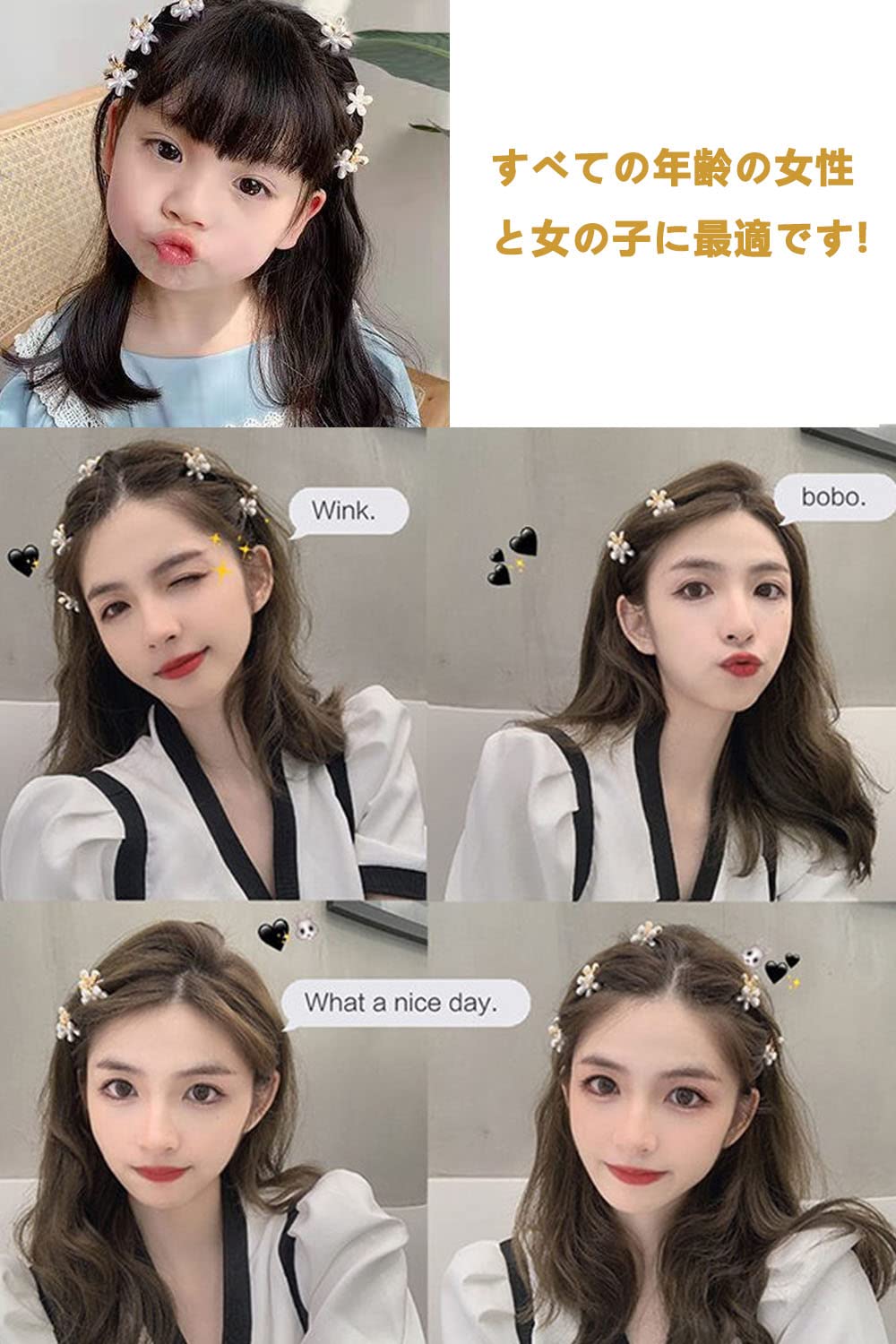 YFFSFDC 前髪クリップ 真珠のヘアクリップ ミニ ヘアクリップ バンスクリップ 可愛い 髪飾り ヘアアクセサリー 髪留め レディース 結婚式 パーティー 誕生日 10個セット | kor Cat*