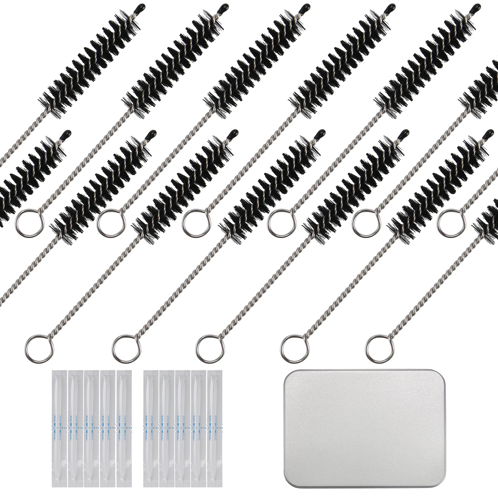 【セット内容】:10本セット、長さ:約90mm、直径:8.5mm、ブラシ部分の長さ:約36mm。綿棒10本と収納ケース1個が付属。