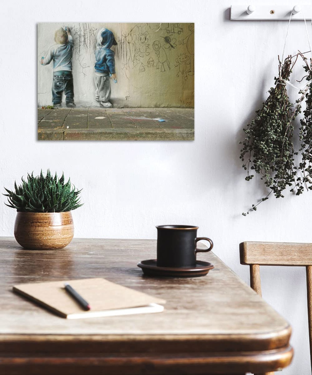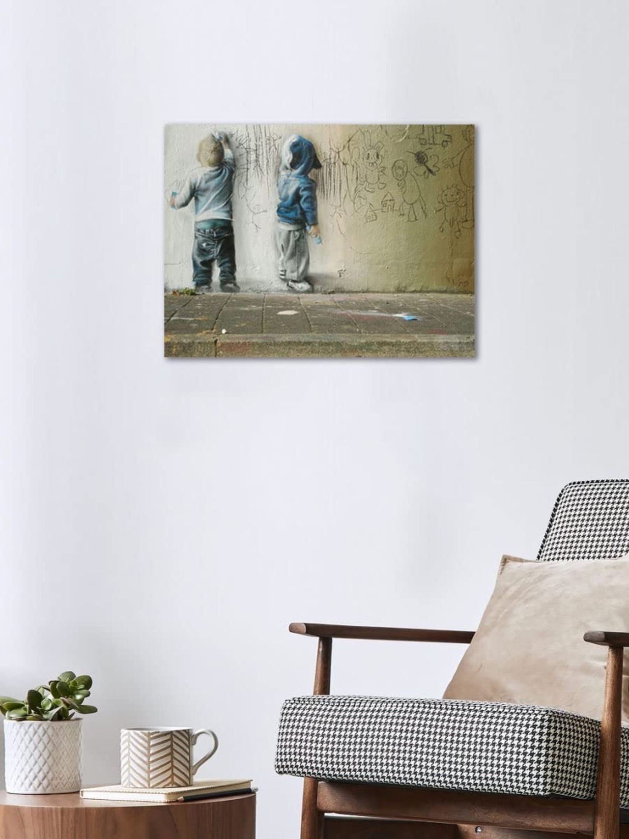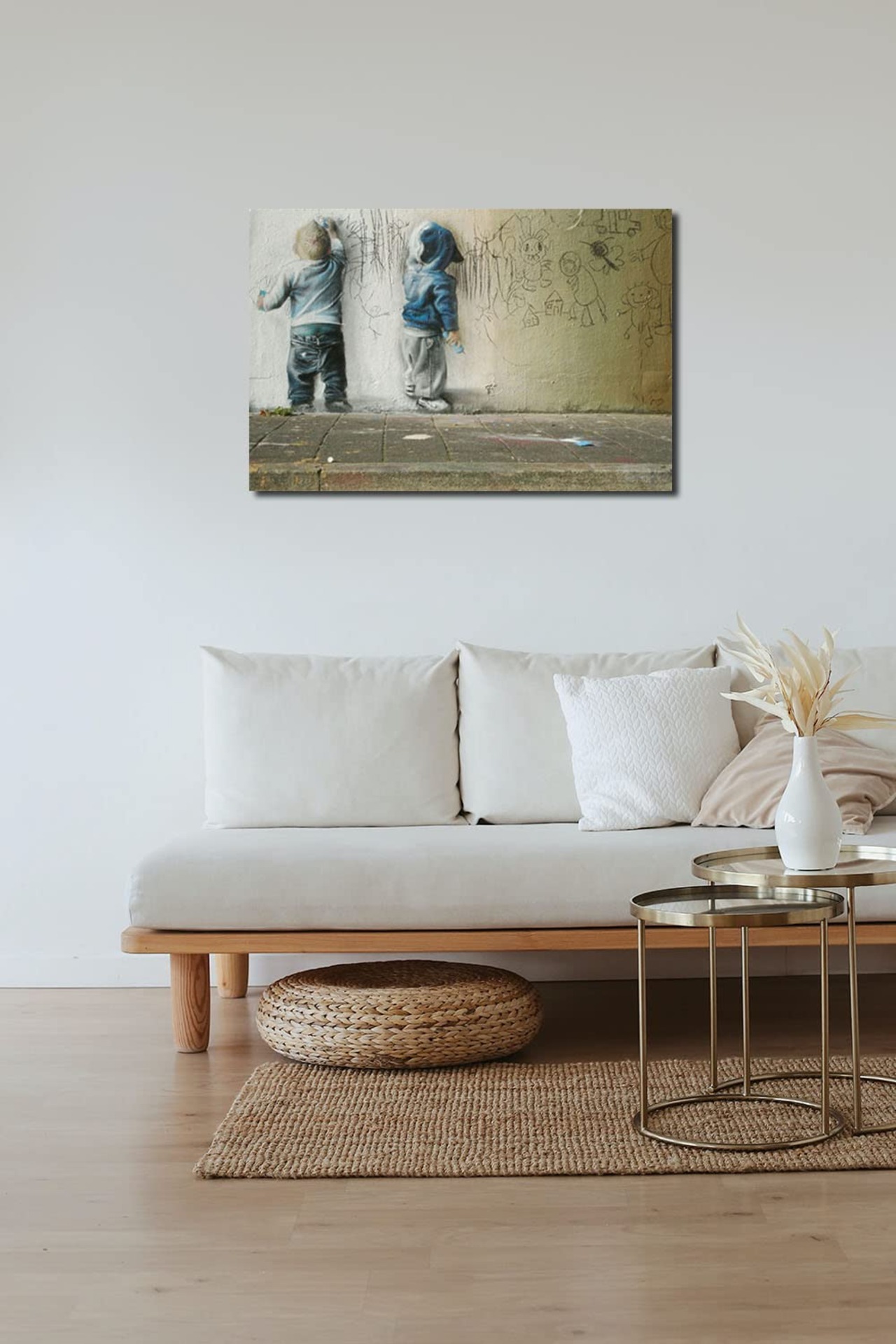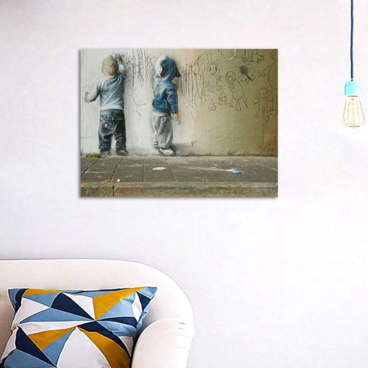 バンクシー 子供の落書 ポスター アートパネル キャンバス 絵画 抽象画 贈り物 インテリア 壁飾り 壁掛け 木枠付きの完成品
