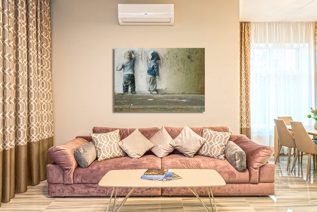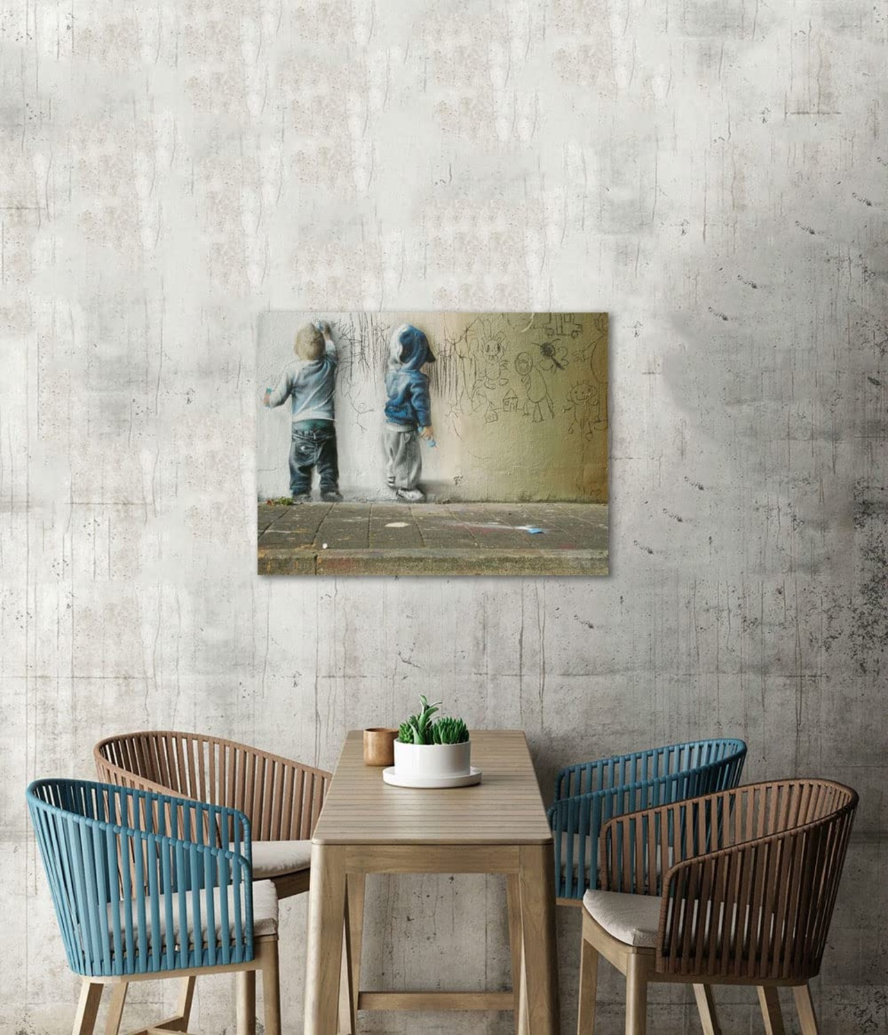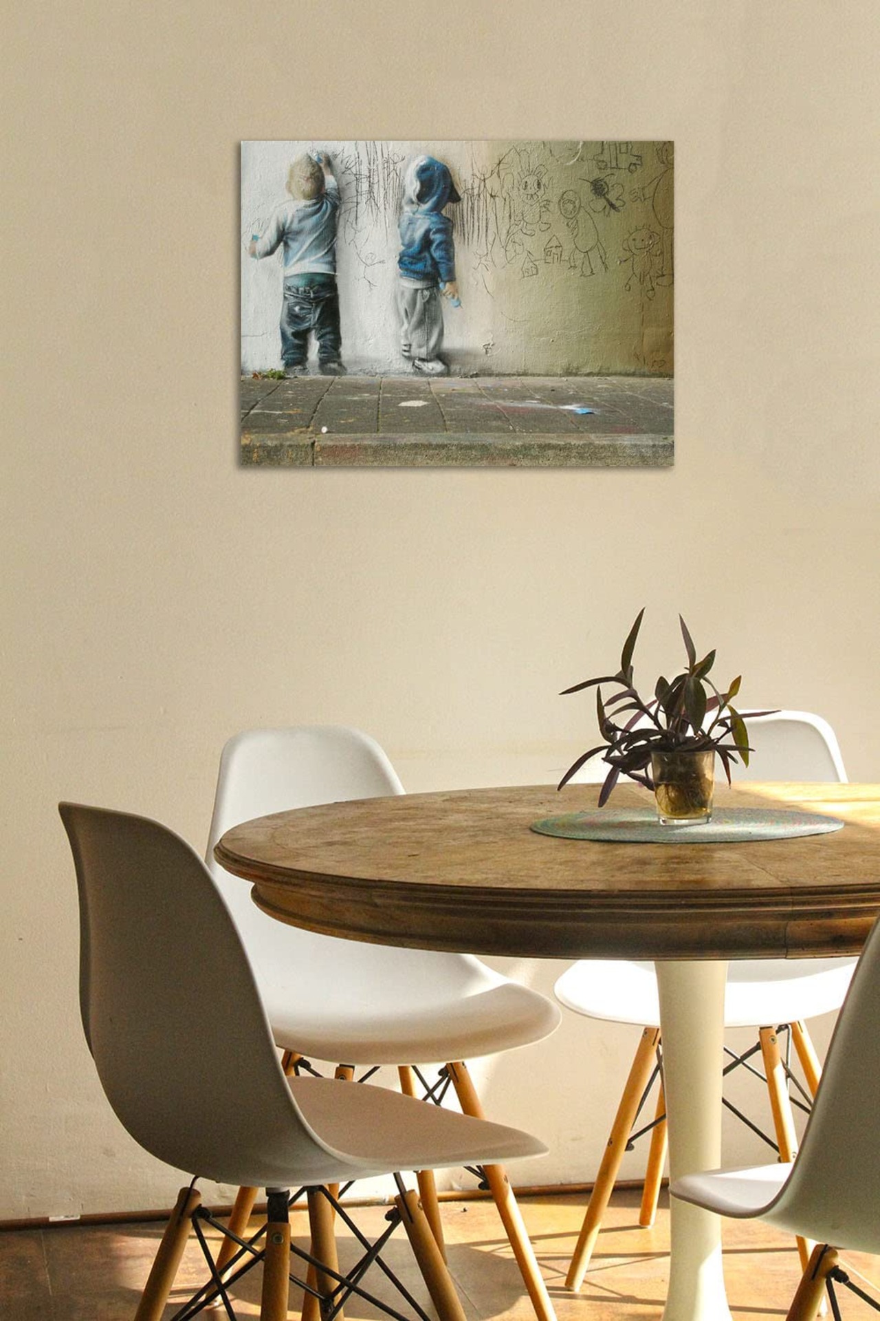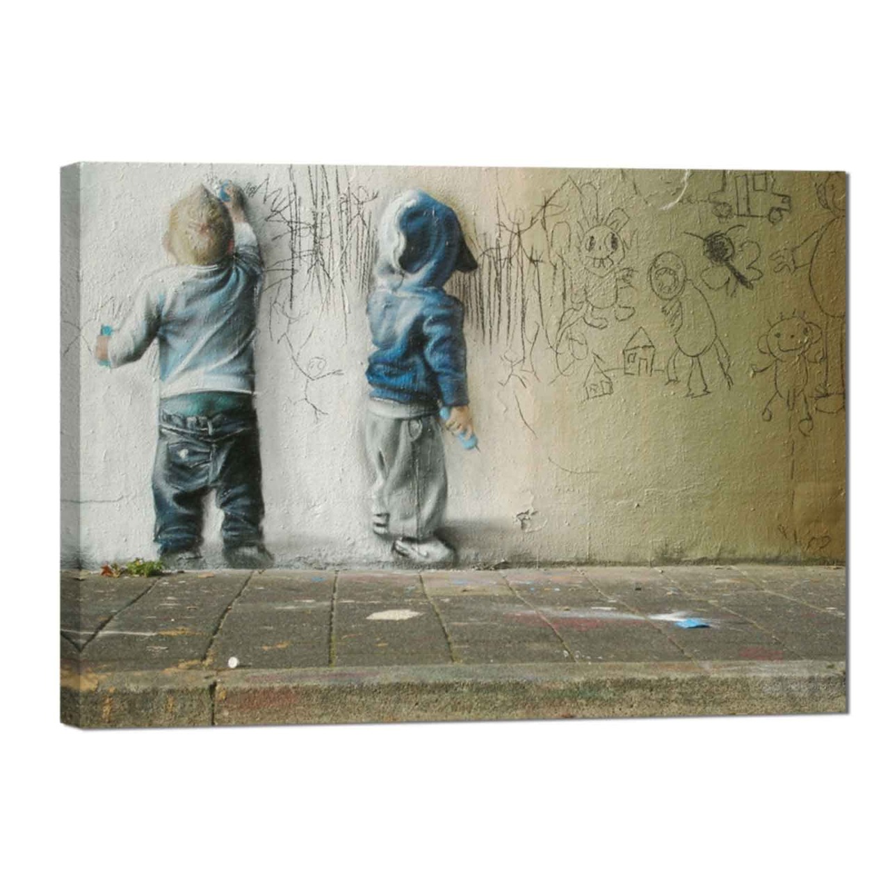 バンクシー 子供の落書 ポスター アートパネル キャンバス 絵画 抽象画 贈り物 インテリア 壁飾り 壁掛け 木枠付きの完成品
