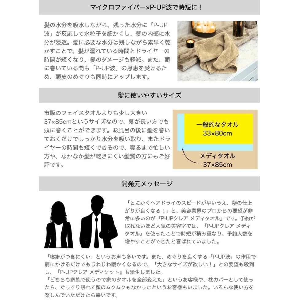 通常のタオルの約4倍の吸収力。ドライヤーの時間短縮になり、ダメージを軽減できます。