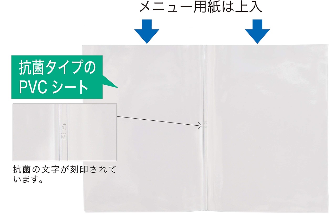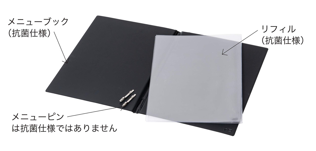 セット内容:抗菌メニューブック×1冊、メニューピン×2本、リフィル×1枚