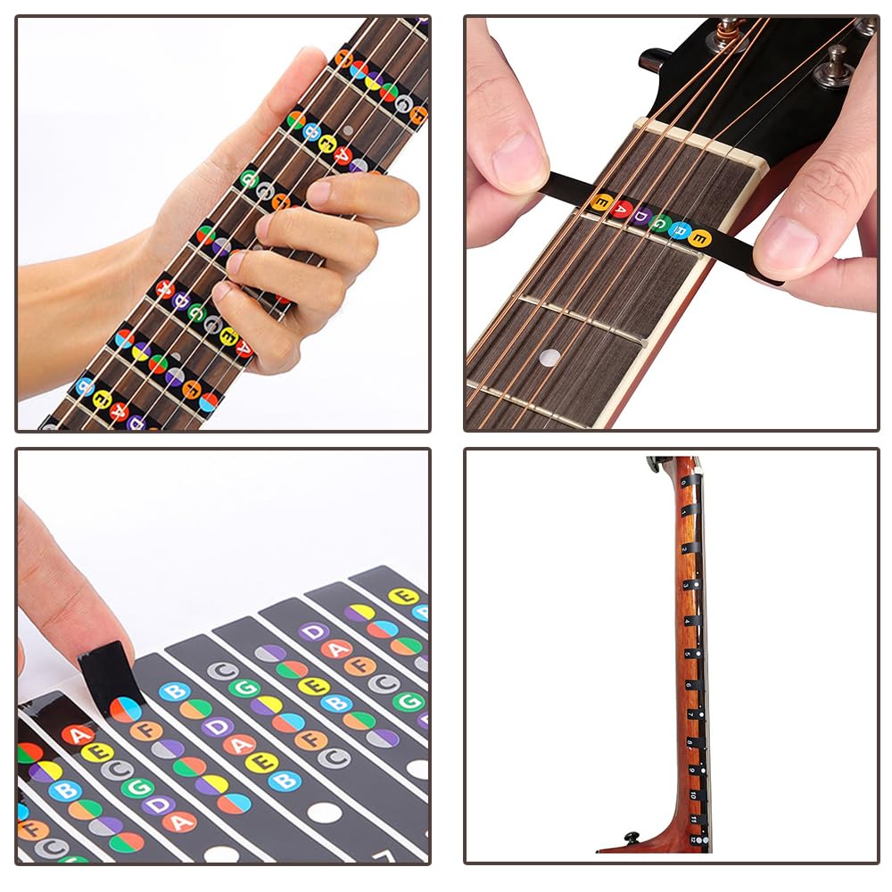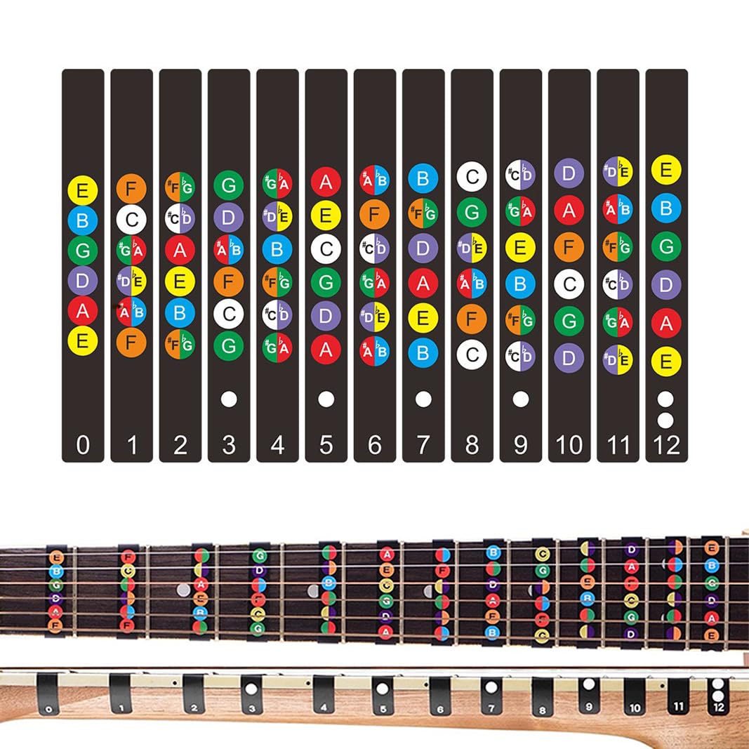 LOYELEY ギター指板シール 2枚セット ギター 指板 ギターコード 指 フレット シール ステッカー スケール 簡単 入門 初心者 練習 チューニング用