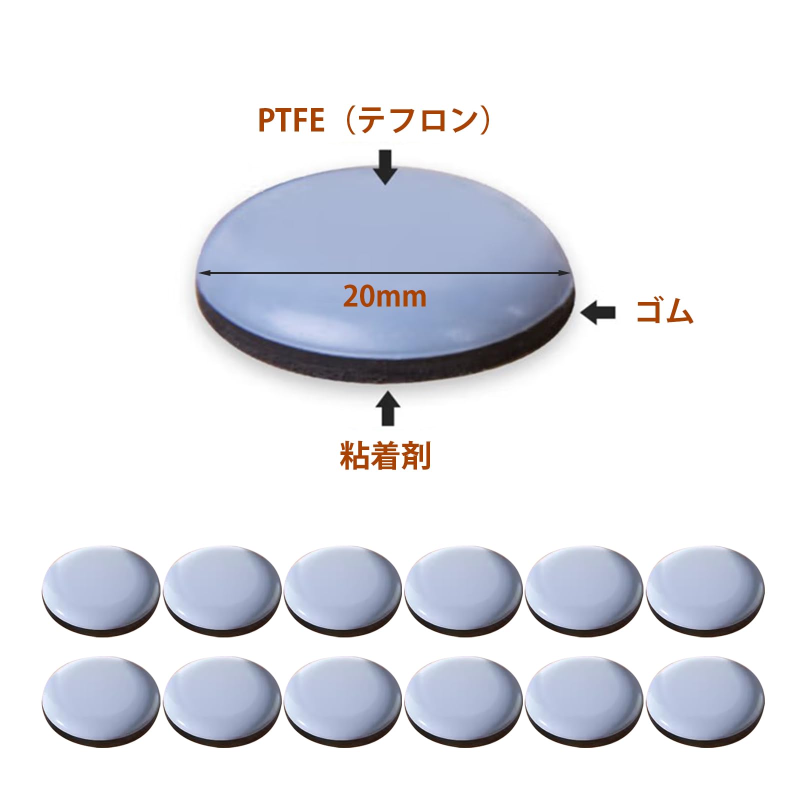 YFFSFDC 家具スライダー 20mm 12枚入り 丸型 家具移動パッド 粘着 楽に移動できる キズ防止 防音