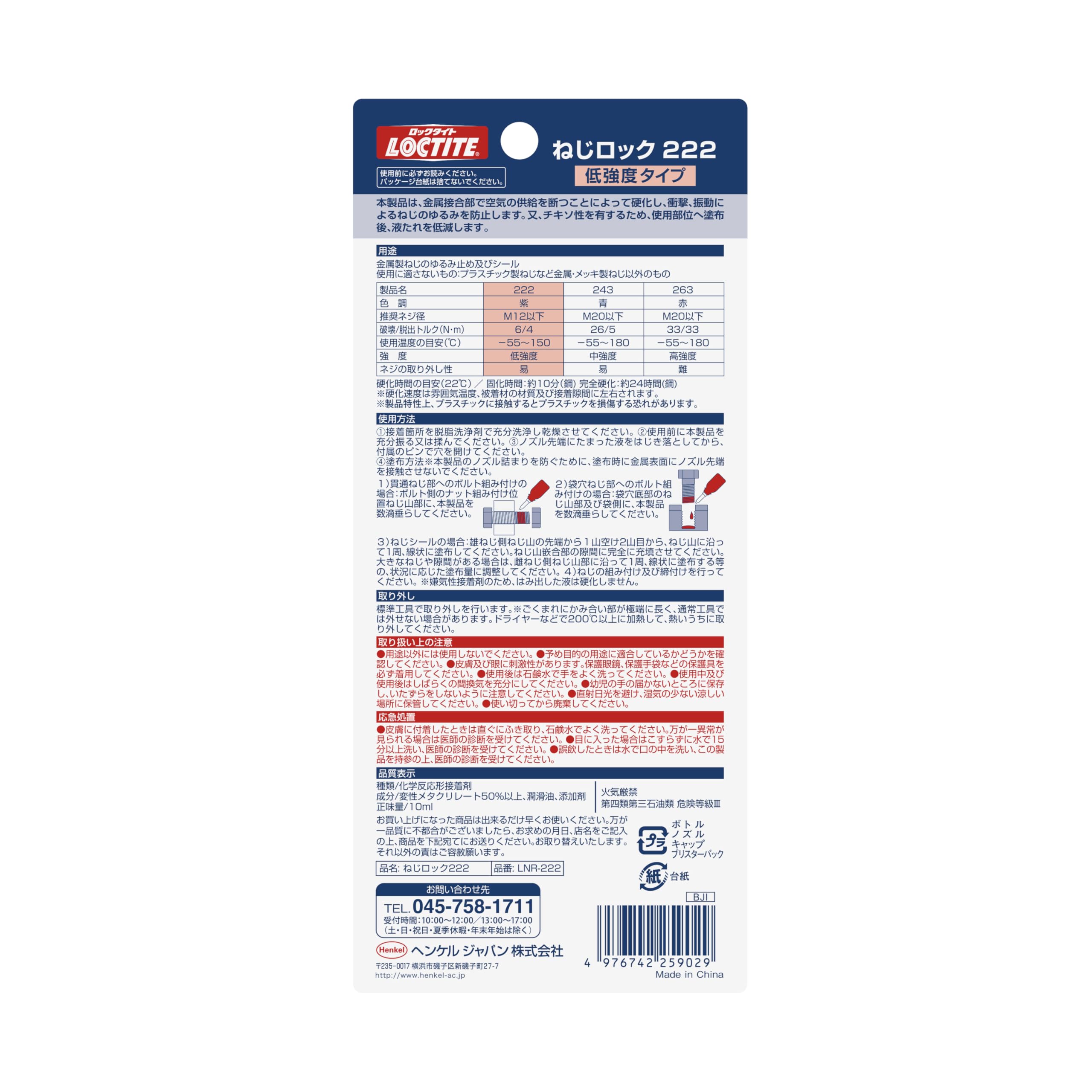 LOCTITE(ロックタイト) ねじロック 低強度タイプ 10ml - 金属製ねじのゆるみ止め及びシール、小ねじなどの低強度のゆるみ止め用接着剤 222