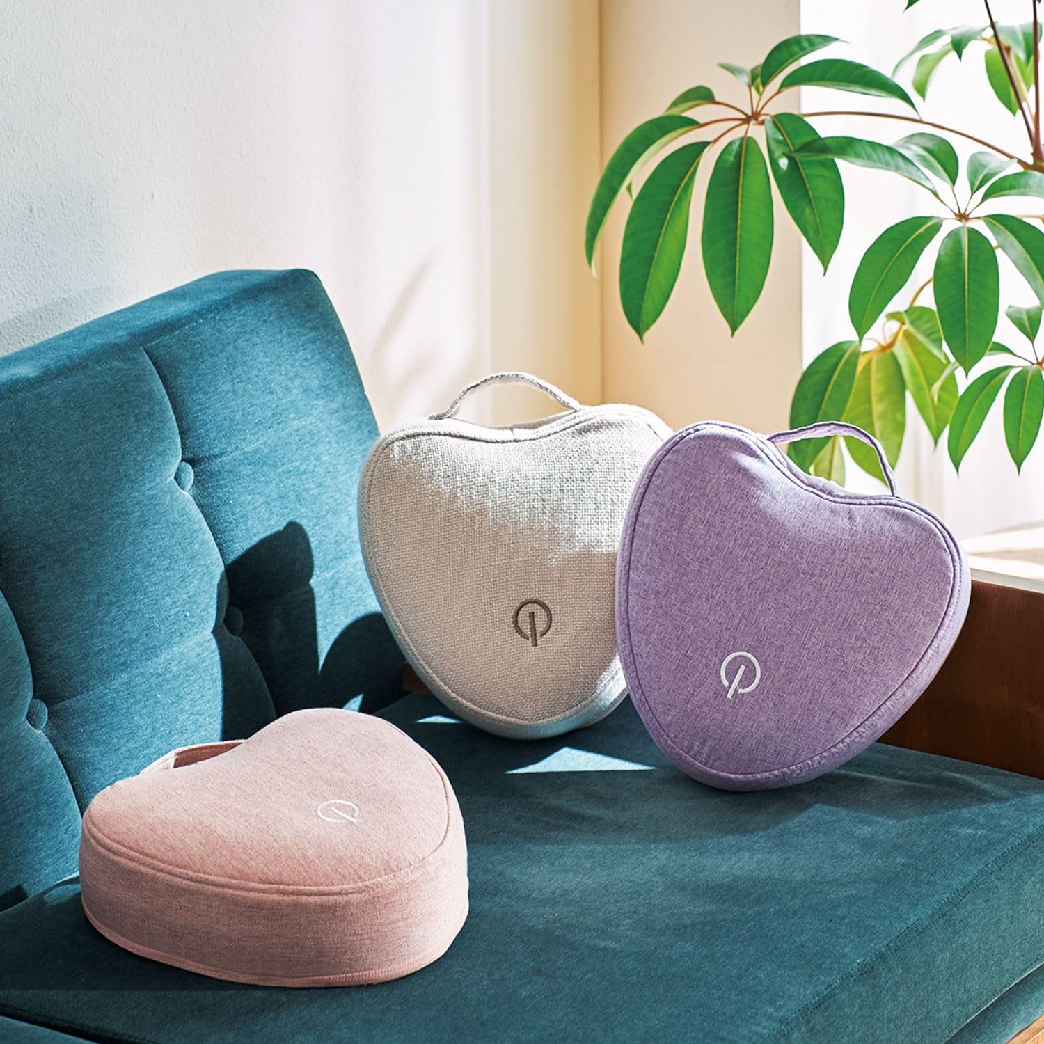 マイキュットクッションは、マイキュットをセットすることで、クッション全体が振動します。(マイキュット本体は別売り)腰、背中、足の裏などお好みの部位に当てて使用できるだけでなく、座ったり立ったり寝転んだりと様々な体勢で快適に使えます。さらに持ち手が付いており持ち運びが簡単なので、どこでも手軽にご利用いただけます。