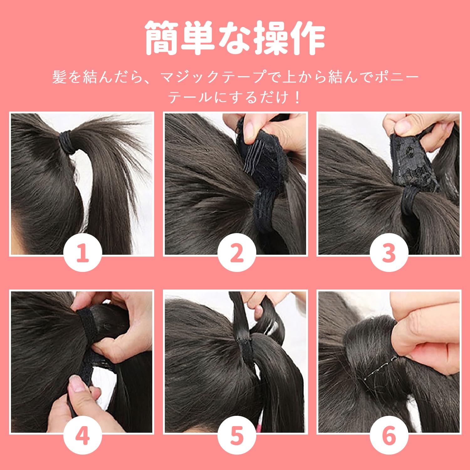 商品仕様:ポニーテール ウィッグの色はナチュラルブラックで、長さは60センチ。付け毛 ポニーテールはマジックテープで固定され、簡単には落ちないので、毎日の着用に最適です。