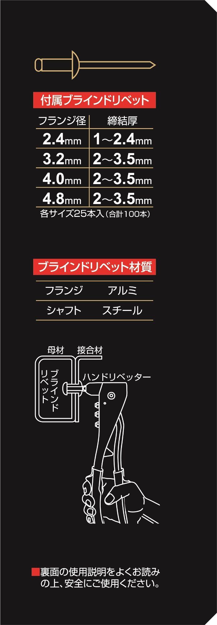 付属リベットサイズ:直径2.4mm、直径3.2mm、直径4.0mm、直径4.8mm
