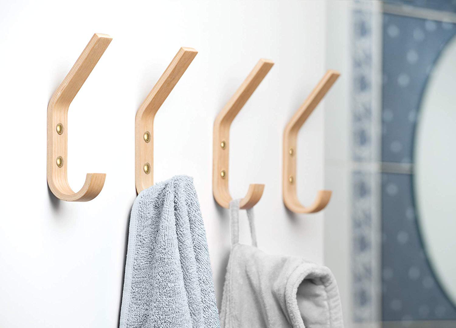 miidoo 木製 壁掛けフック ウォール ハンガー J字式 北欧風 洋服 コード掛け 帽子 玄関 寝室 (オーク 4個セット)