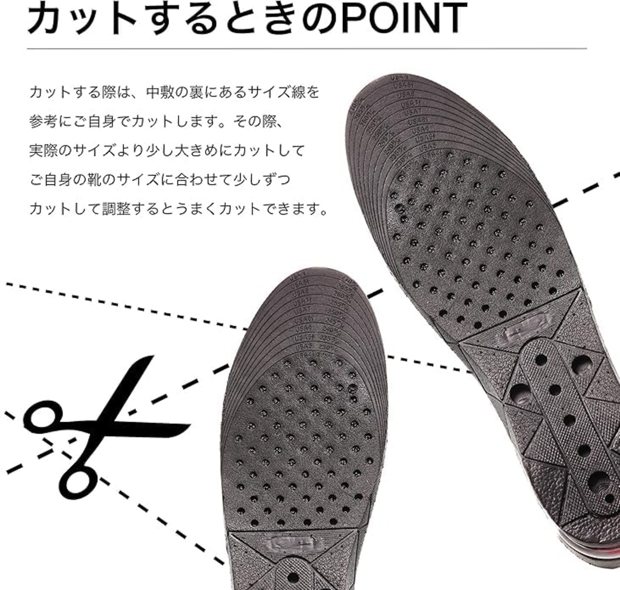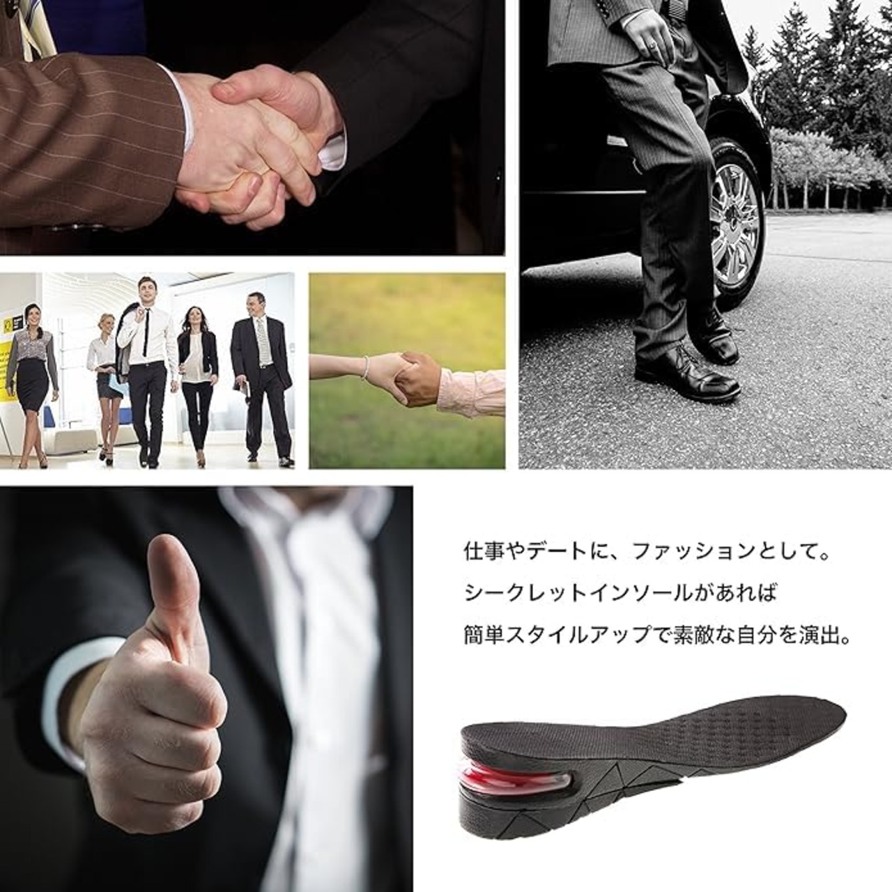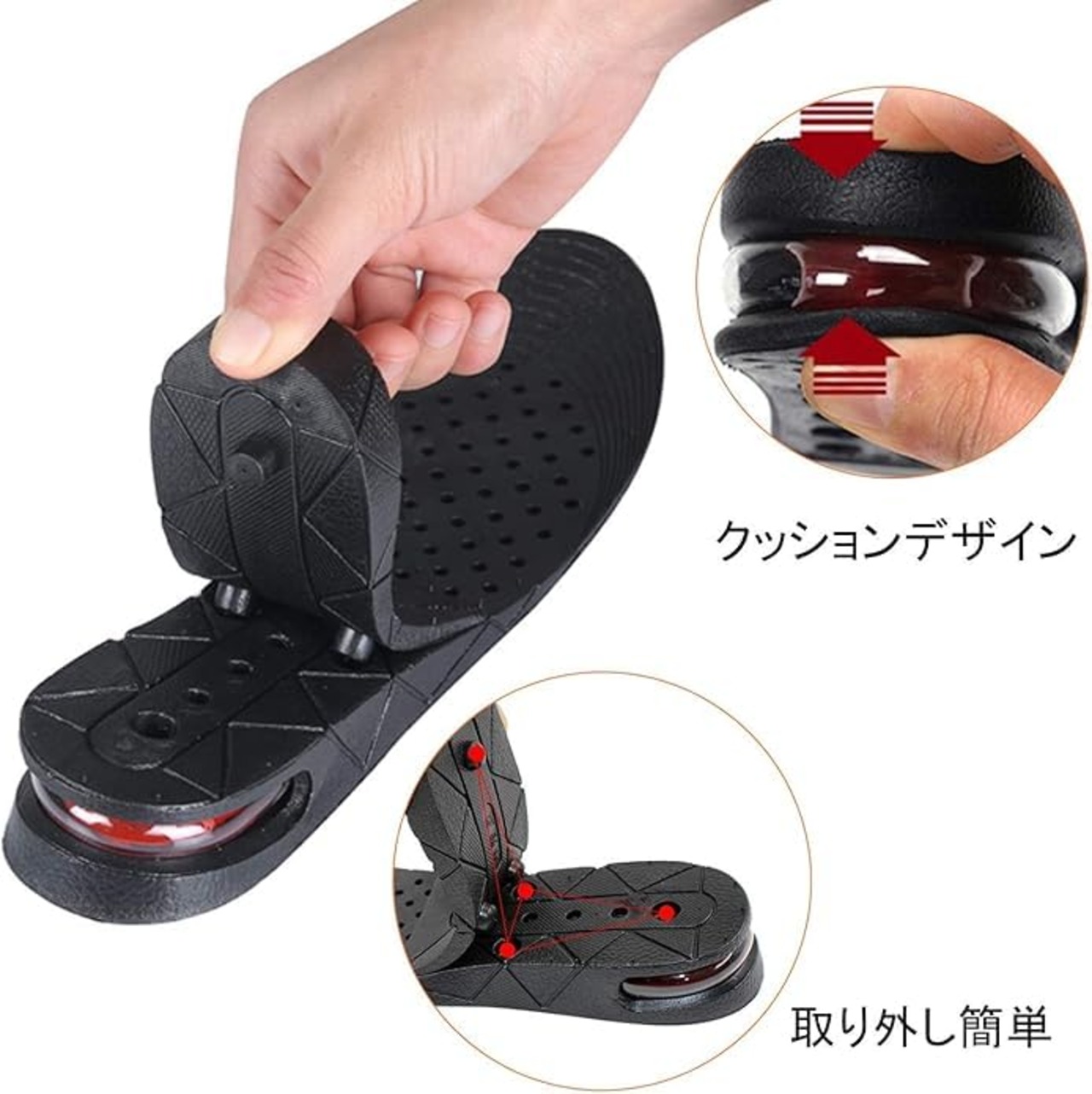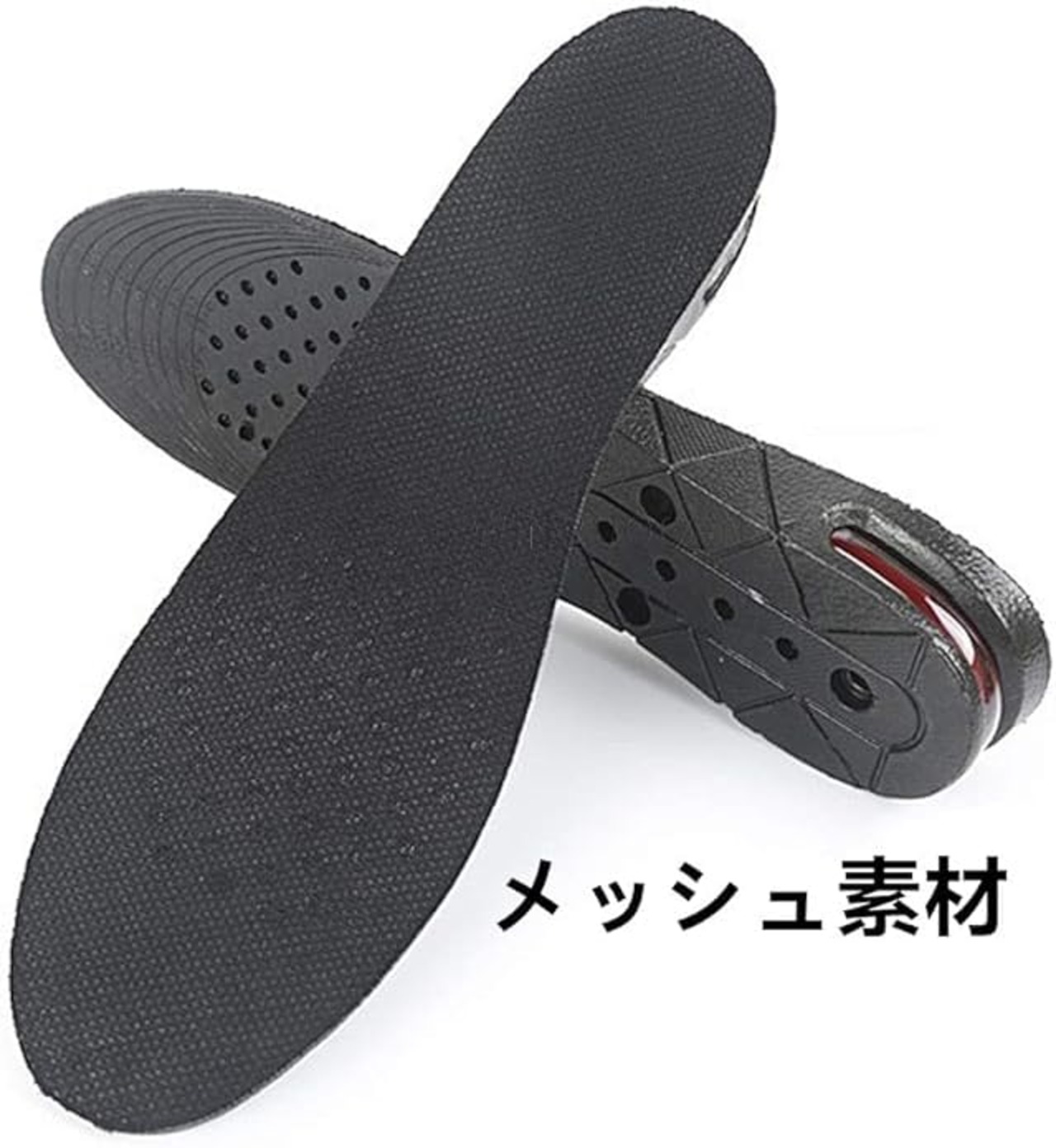 【TS・CORP】インソール 中敷22.5cm~27cm 男女兼用 身長アップ 4層構造 最大7.5cmアップ エアクッション吸収 ヒールアップ シークレットインソール ブラック 黒