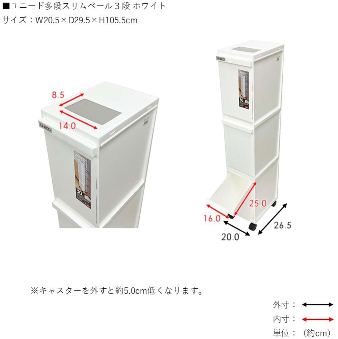 新輝合成 トンボ ユニード ゴミ箱 3段 30リットル 蓋を開けずにごみを捨てられる スリム キャスター付 キッチン 分別 ホワイト 幅20.5×奥行29.5×高さ105.5cm 蓋付き 日本製