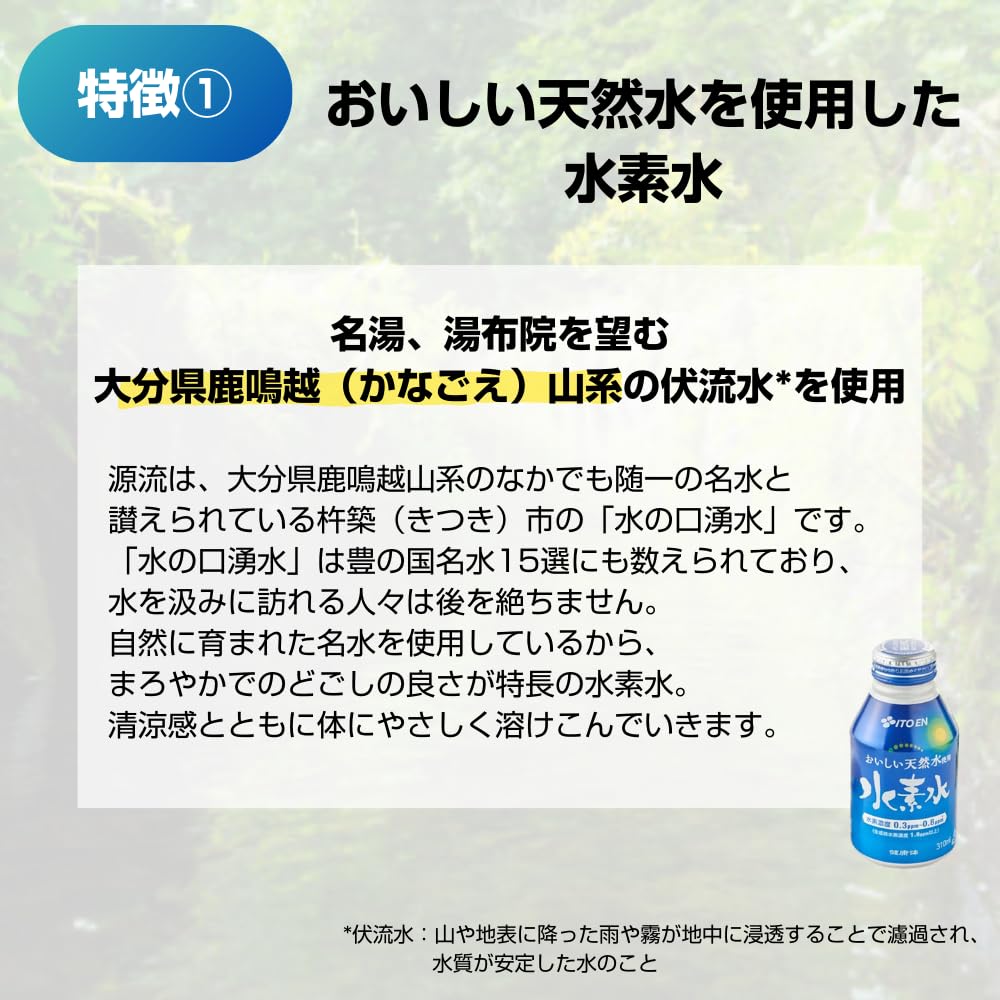 【伊藤園公式通販 健康体】水素水 ボトル 缶 310ml×48本(2箱) 大分の天然水使用 特許製法 おいしい水 天然水 高濃度