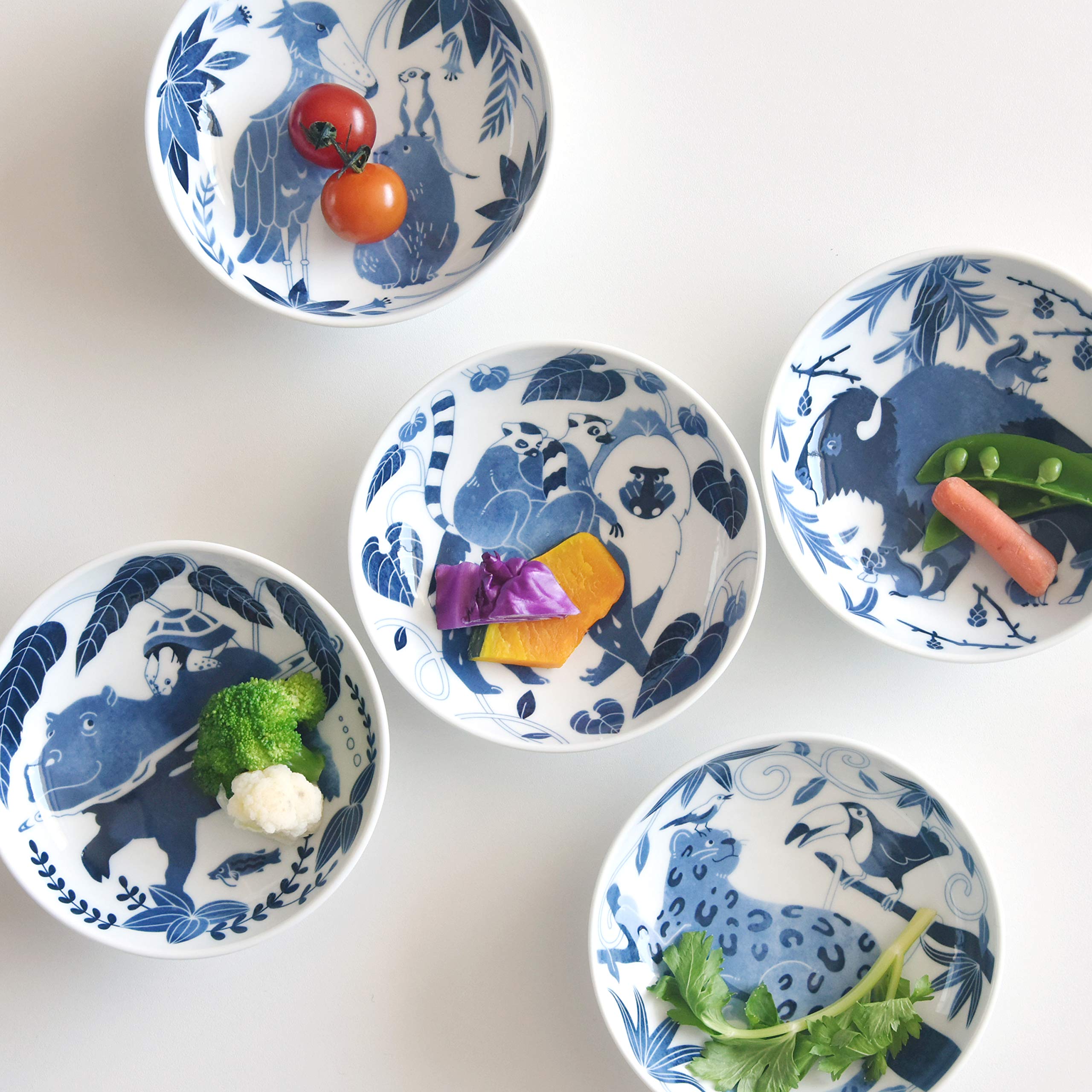 中央に動物、外側に植物を配置したので、料理を盛り付けた時と盛り付けていない時の印象が大きく異なります。