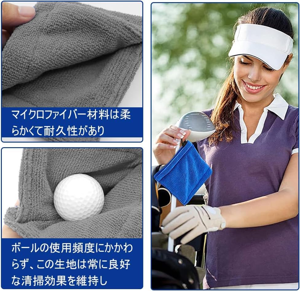 マテリアルとセットの内容: セットには、グレー+ブラックの2個入りが含まれています。サイズ:12*12 cm。ゴルフタオルは柔らかくて快適な材料で作られており、ユーザーが拭くときに最高の感触を感じることができるようにしています。マイクロファイバー材料は柔らかくて耐久性があり、優れた洗浄効果を維持します。