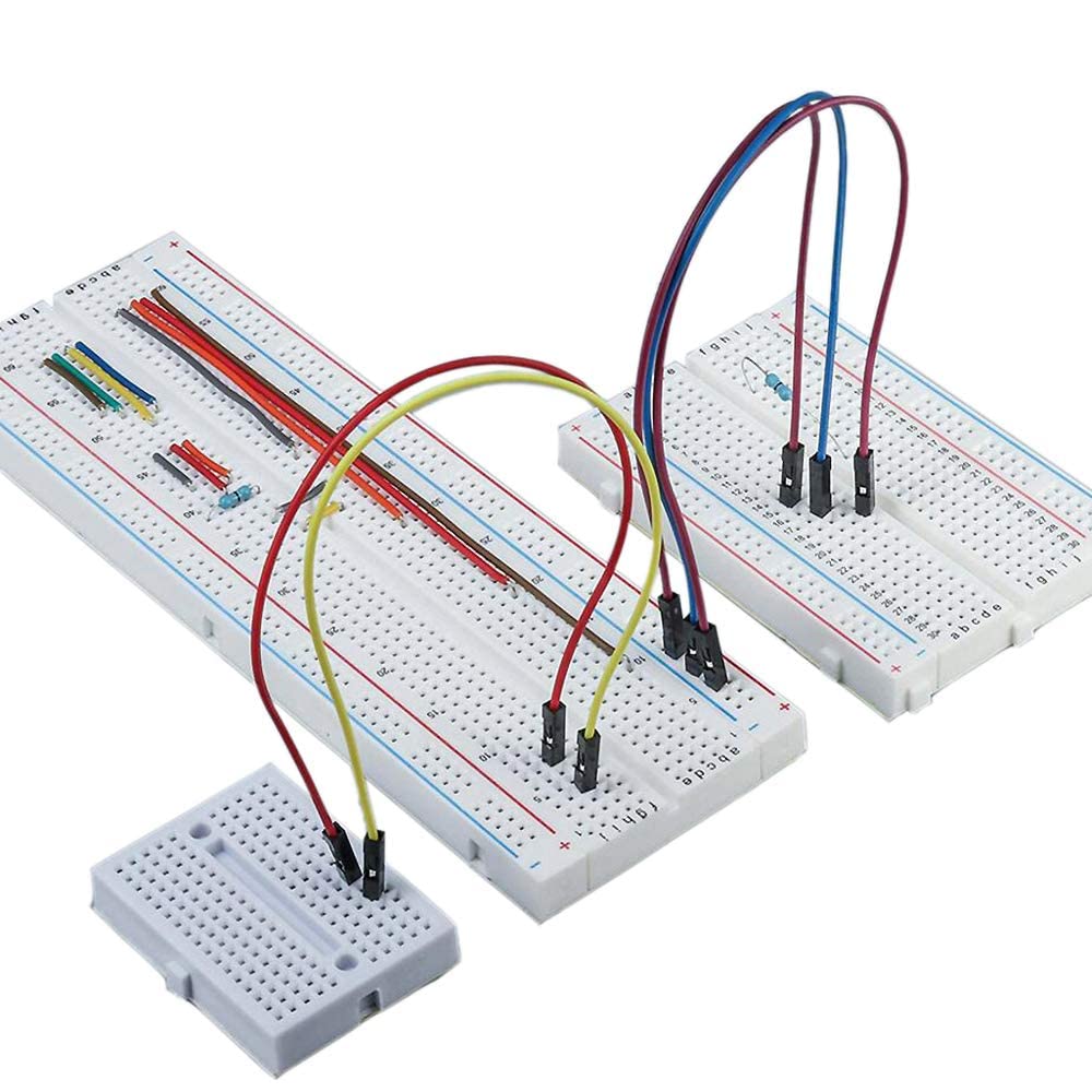 ジャンパーワイヤーをブレッドボードの穴に挿すだけで、手軽に電子回路の試作や実験ができます。