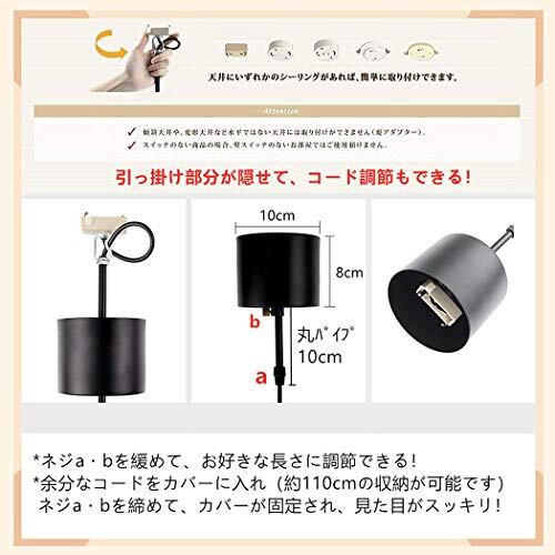 【取付方法】:吊り下げ照明、引掛シーリング式、簡単に取り付けます。別売のプラグを使えばダクトレールにも対応できます。女性でも簡単に設置できます。 シーリングカバーの中にコード調節器具がついているので、コードの長さが簡単に調節できます。また余ったコードはシーリングカバーの中に収納できます