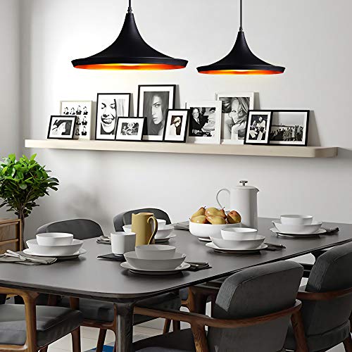 【品名】:ペンダントライト【材質】:アルミニウム 【カラー】外側:ブラック 内側:ゴールド 【サイズ】直径36(cm)x高さ20(cm) 【重量】:約1.5kg 【コードの長さ】:10cm~120cm(調節可能)【口金】:E26・40W・100V 【電球対応】:LED、白熱灯、蛍光灯 【点灯方式】:壁スイッチ 【電球別売】:をご注意ください
