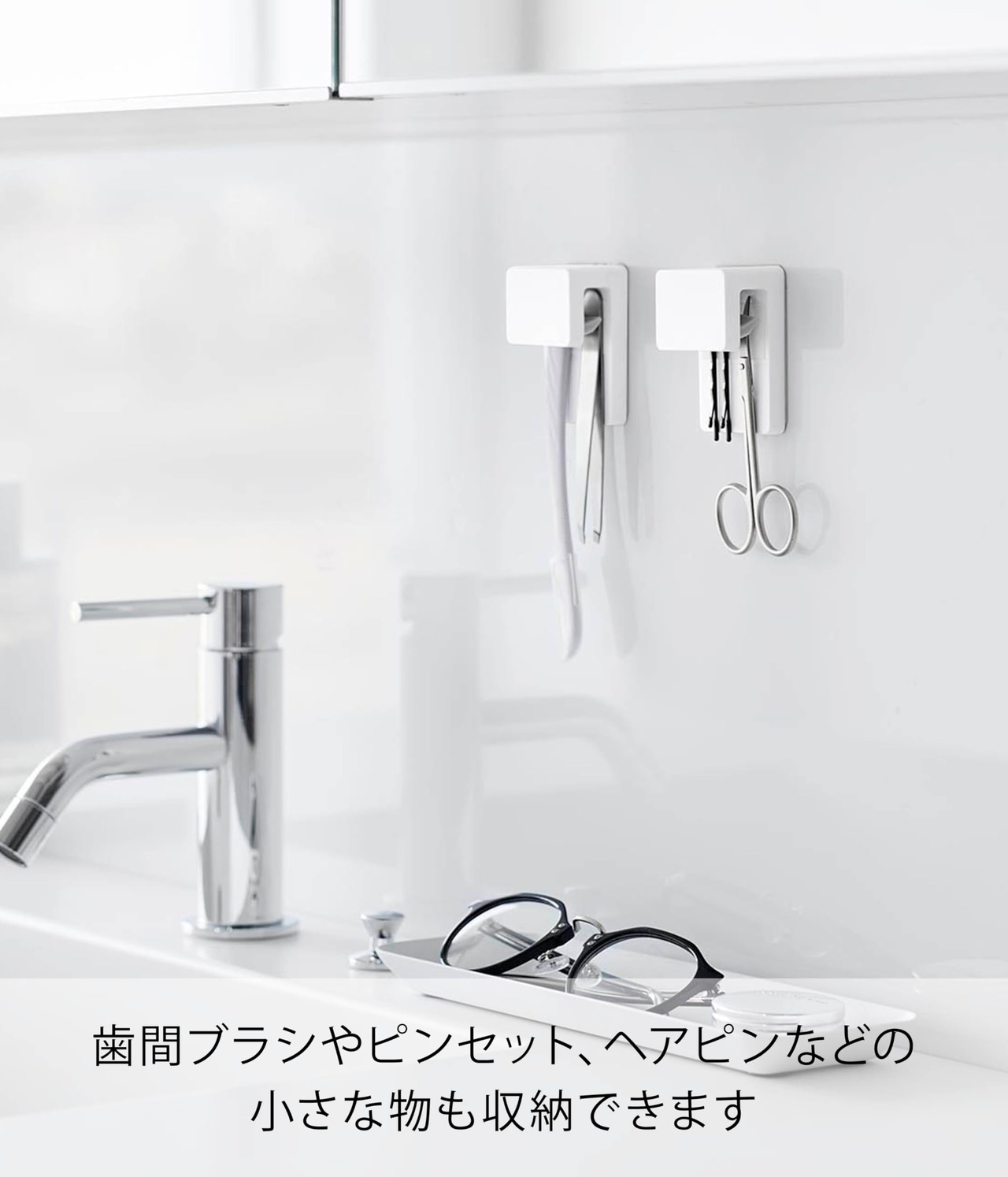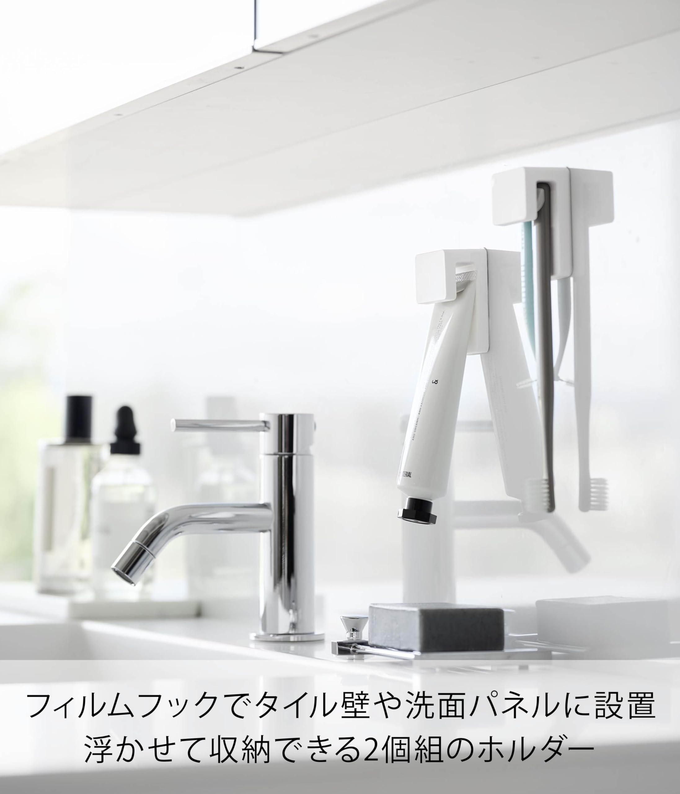 山崎実業(Yamazaki) フィルムフック 差し込み式 歯ブラシ & チューブホルダー W4 2個組 ホワイト 本体:W4×D2.7×H6cm(1つあたり・フィルムフック含まず) タワー tower 浮かせる収納 歯ブラシホルダー 歯ブラシスタンド 1493