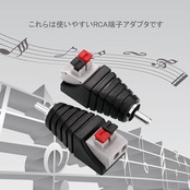 接続簡単:スピーカーワイヤー to RCA アダプター。手持ちのスピーカーケーブル をちょっと延長したいときに便利。