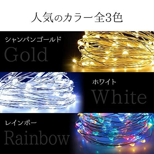 電光ホーム ソーラー LED イルミネーション ジュエリーライト [ 8パターン 点灯 / 10m 100球 ] 屋外 防水 防雨 ガーデン 屋外イルミネーション (シャンパンゴールド)