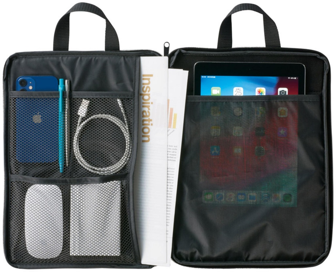 もちろん機能も優秀:衝撃吸収ポリウレタンケースの中は、4仕切りのめメッシュ仕切りとコピー用紙入る
