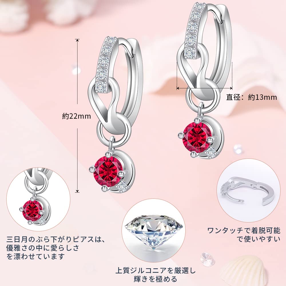 YUIITU ピアス レディース 人気 上質ジルコニア 誕生石 フープ ピアス 揺れる 2Way ピアス 金属アレルギー対応 ピアス 18金 プラチナメッキ シルバー925 ピアス おしゃれ 三日月 ピアス 大人 アクセサリー プレゼント 誕生日 結婚記念日