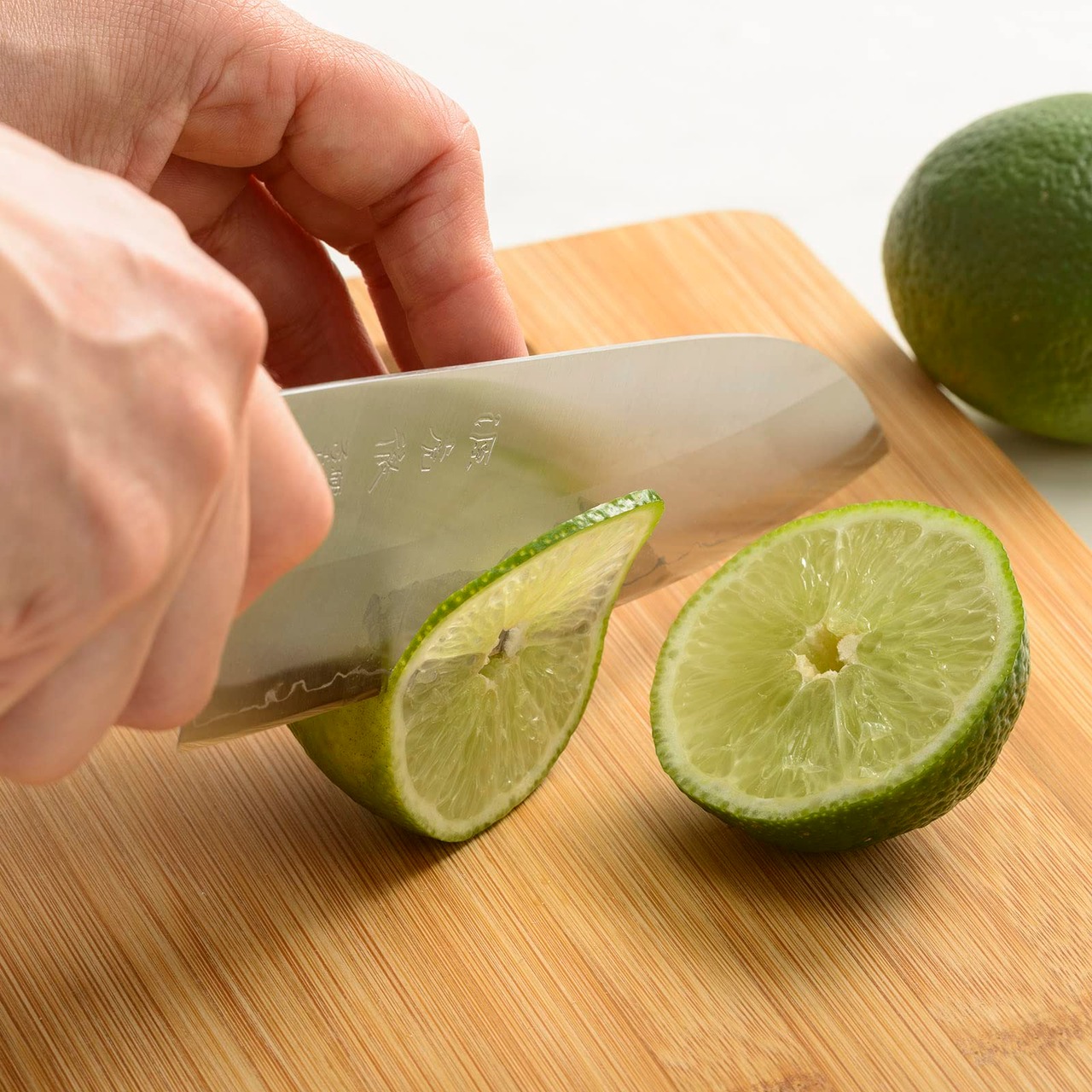 源虎徹は800年の歴史と伝統ある刃物の町、岐阜県関市で選び抜かれた素材と伝統技術によって生まれた逸品。世界的に有名な特殊鋼の産地スウェーデン生まれの高級刃物鋼(19C27鋼)を、三層鋼(割り込鋼)に鍛え上げ、熟練された職人の手によって、一本一本高度な熱処理と丁寧な研ぎ上げ、精魂こめた保田式本刃付けをほどこしてあるので、刃身は硬く、錆びには強い、粘りのある鋭い切れ味が特長