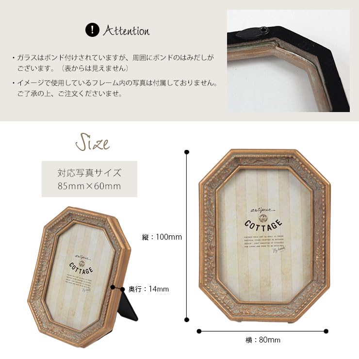 フレーム:100×80×14mm/適応写真サイズ:85×60mm/フレーム内サイズ:78×54mm/重量:約80g