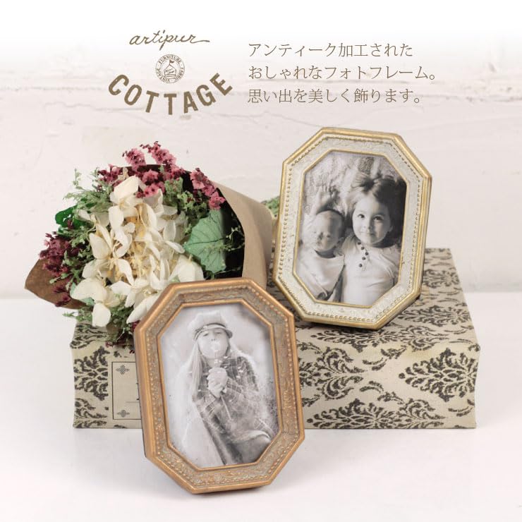 東京かんかん アンティーク風 写真立て ミニ フォトフレーム フォトスタンド 壁掛け S 10×8cm ホワイト