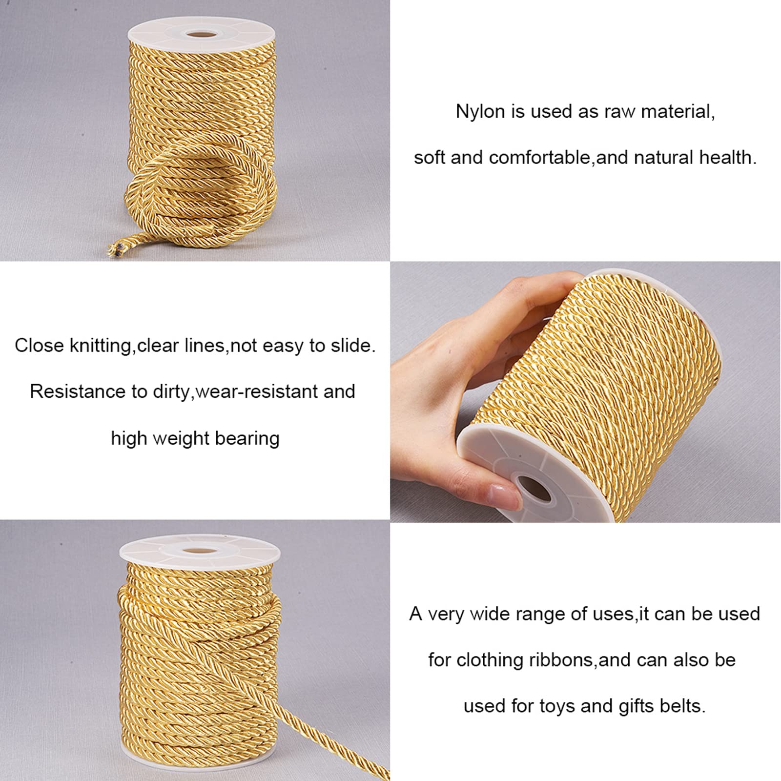 PH PandaHall 5mm ツイスト ナイロン ロープ 約20m巻 編みコード ナイロン糸 トリムコード クラフトロープ ボヘミア風 ナイロンコード DIY用壁掛け用 ゴールド リボンの飾り 髪飾り 服飾 和服 浴衣用 成人式 装飾