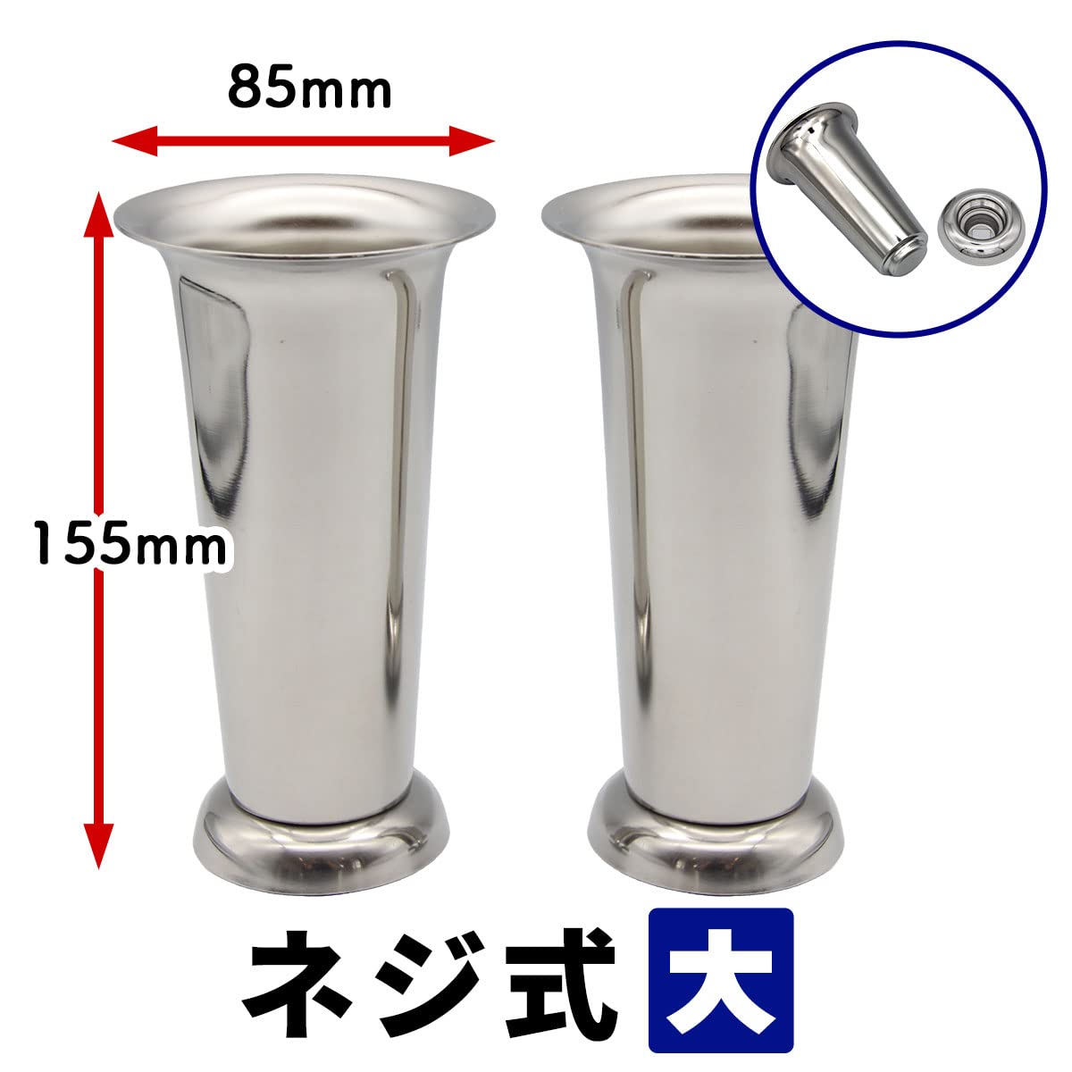 【お墓用】花立 1対2本セット 着脱式 台座固定 本体ネジ込タイプ 大【STクラフト】