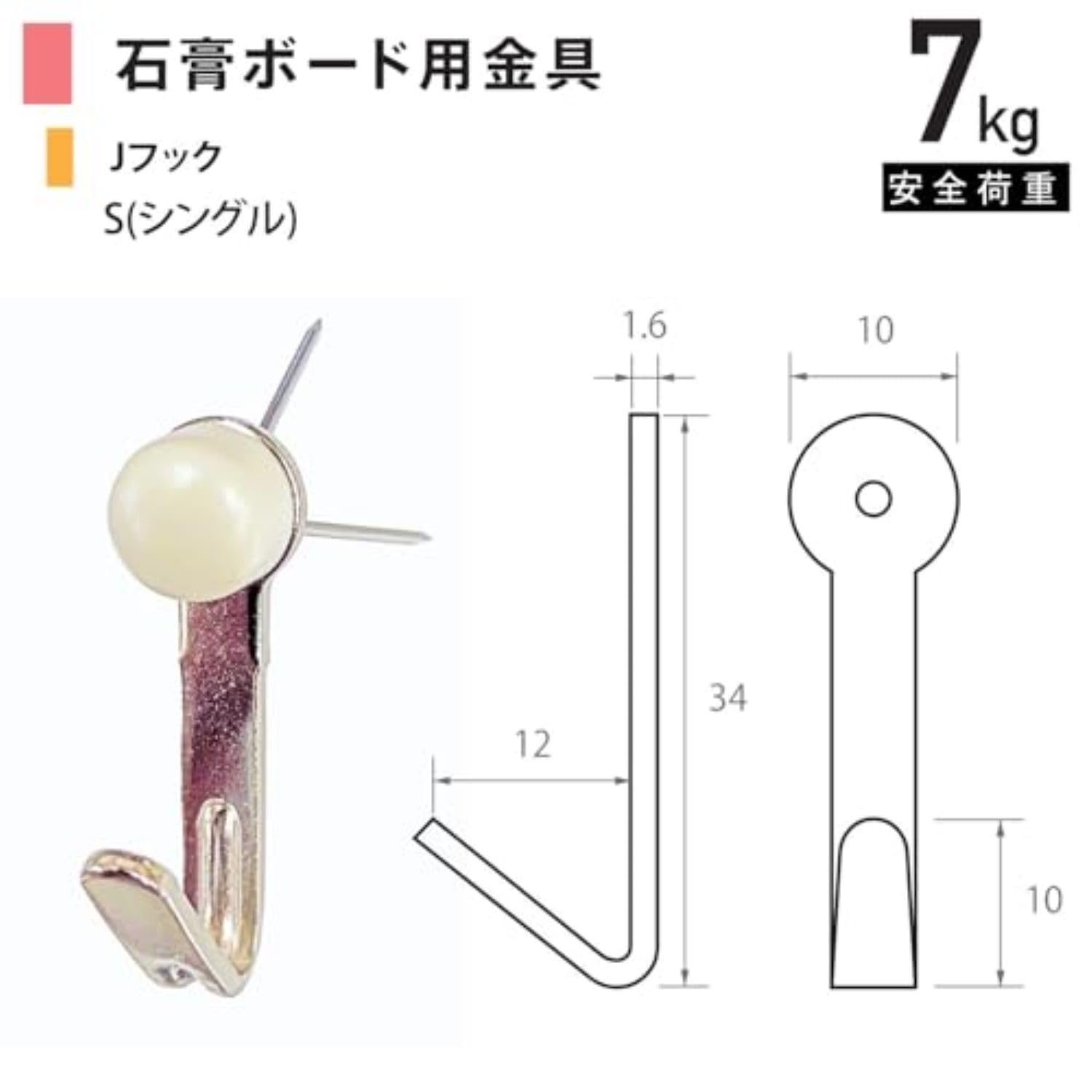 福井金属工芸 JフックS(シングル) 2個入 安全耐荷重7kg 賃貸 抜き跡目立たない 石膏ボード・木壁対応 絵画 壁掛け展示 4292