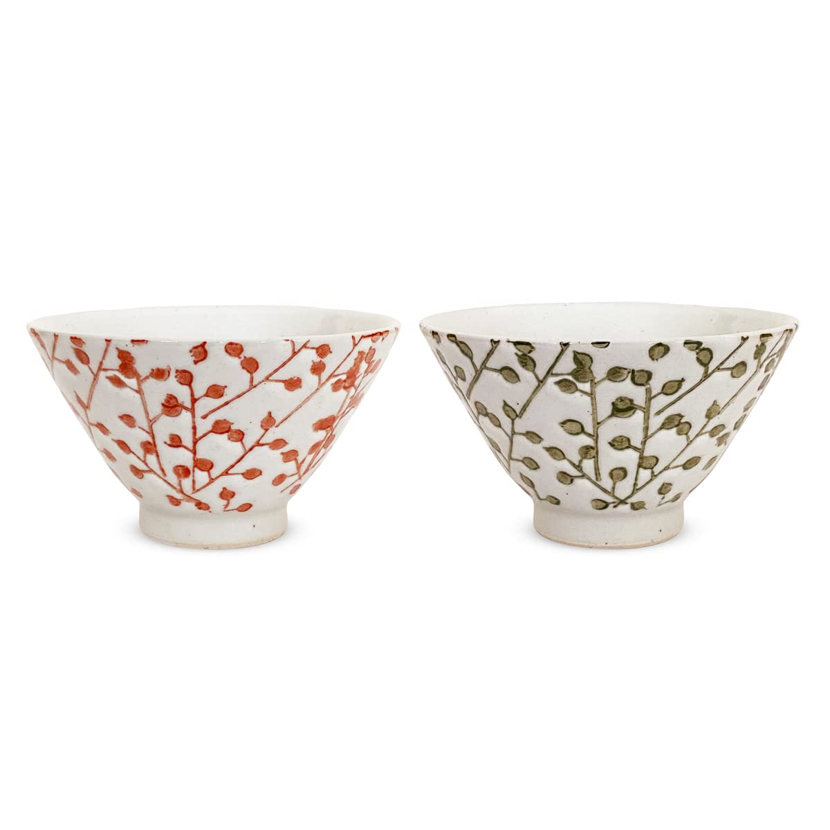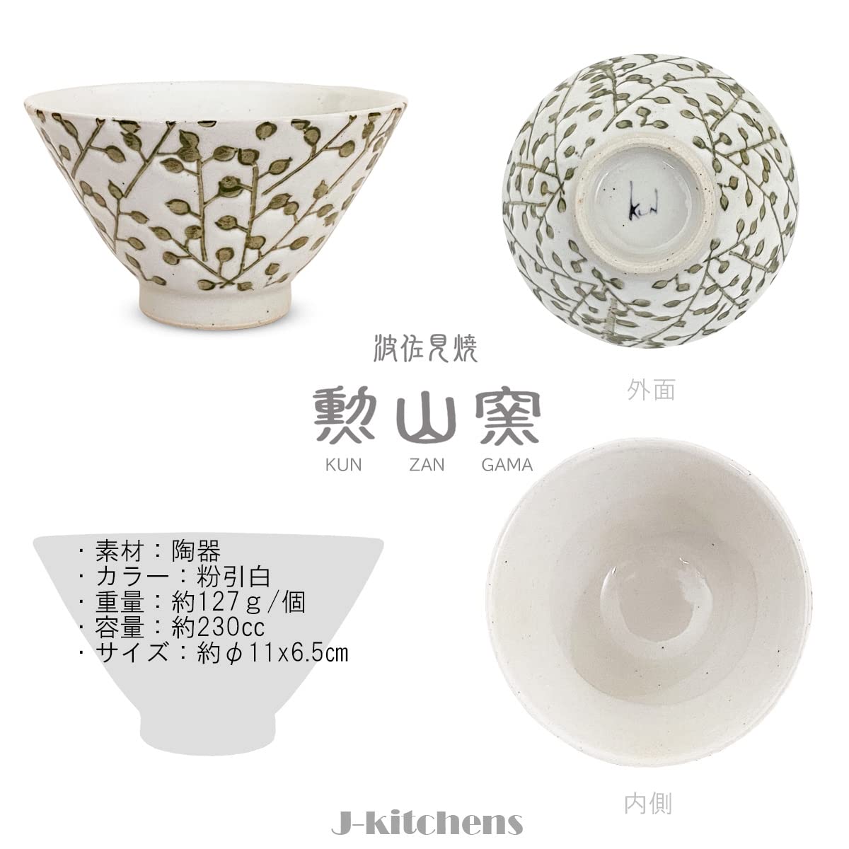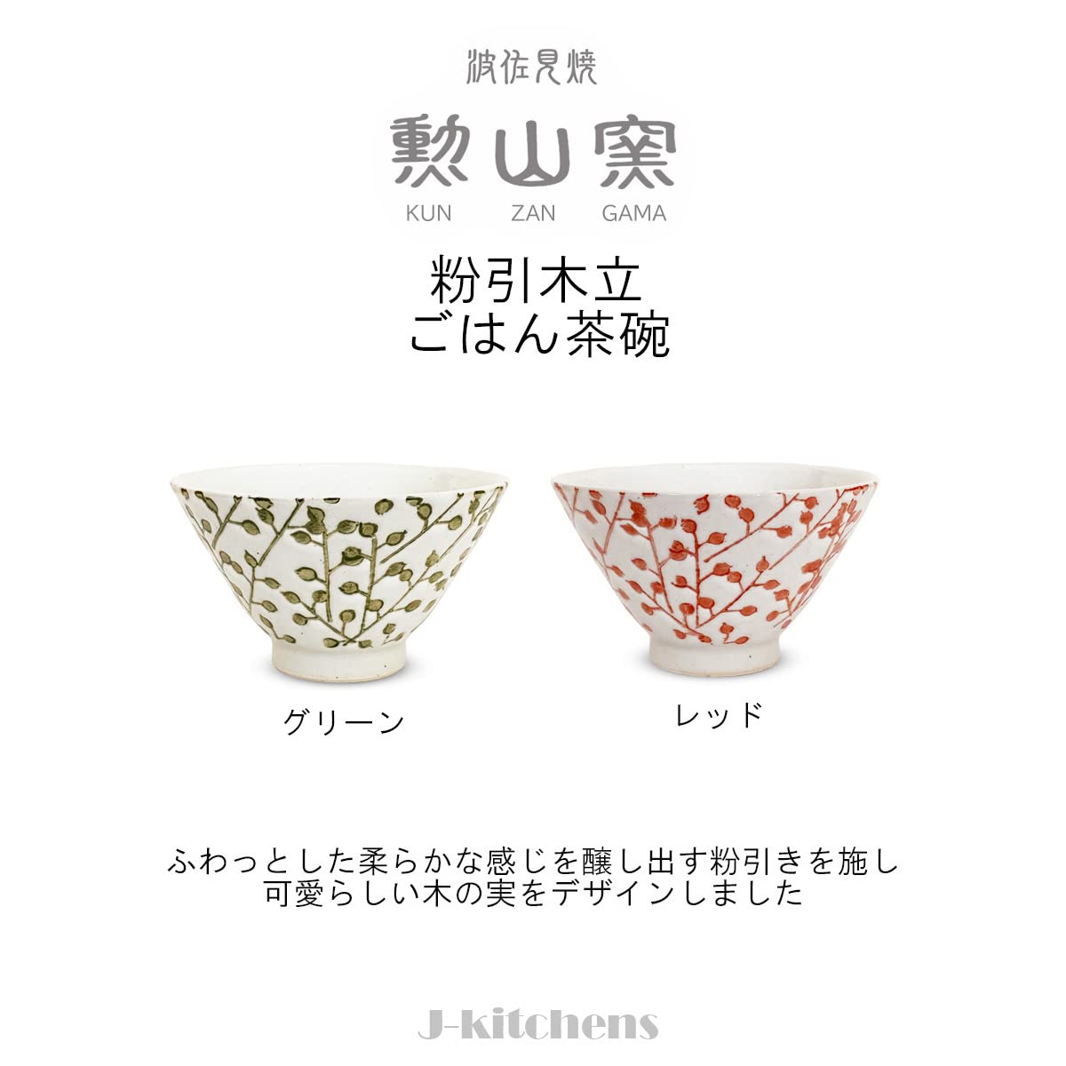 ジェイキッチンズ 勲山窯 ペア 茶碗 11cm 波佐見焼 日本製 粉引木立 (レッド グリーン)