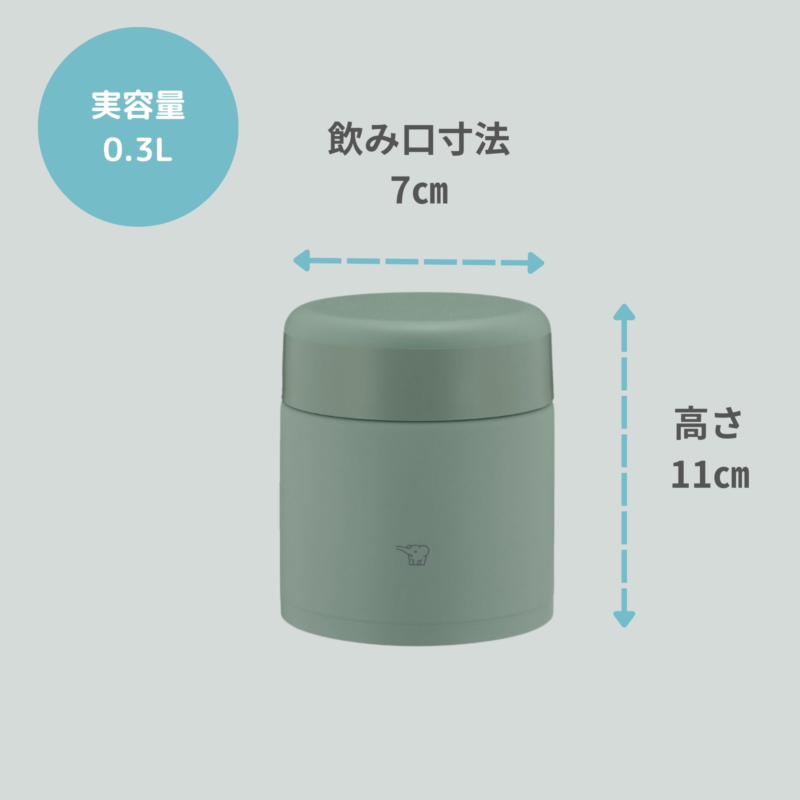 【シームレスせん】象印マホービン スープジャー 300ml 汁椀サイズ 真空断熱構造 お手入れカンタン おいしく保温・保冷 マットグリーン SW-KA30-GM